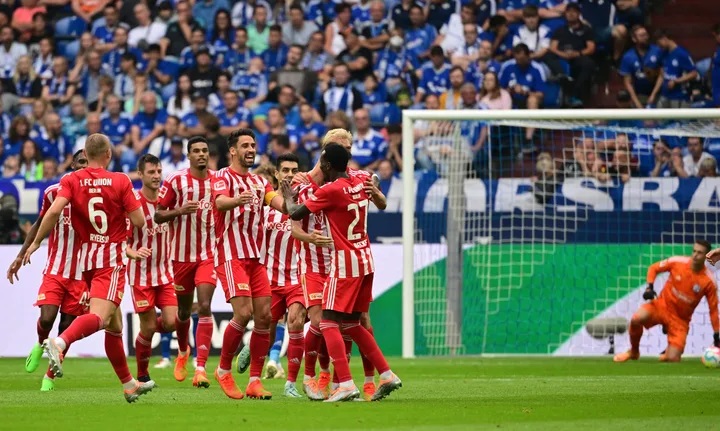 柏林联合球员在比赛中庆祝。图片来自德甲官网