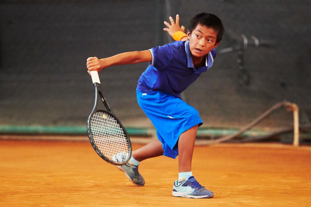 8月底,在2022亚瑟士青少年网球巡回赛广州站,一个背背篓上赛场的少年一路过关斩将,拿到U14组男单冠军。
