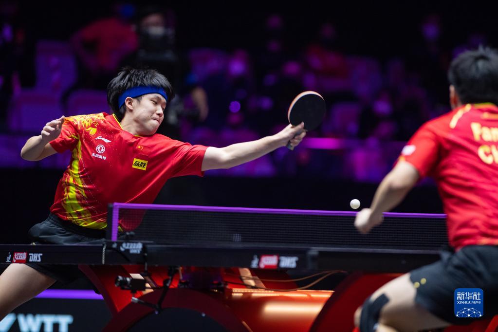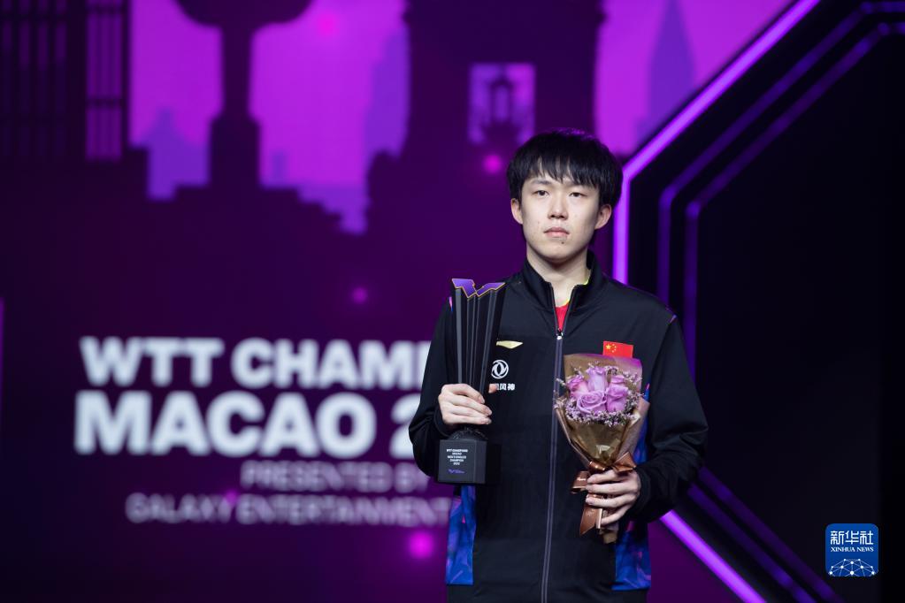 当日,在澳门塔石体育馆进行的2022年WTT澳门冠军赛男子单打决赛中,中国选手王楚钦以4比3战胜队友樊振东,夺得冠军。