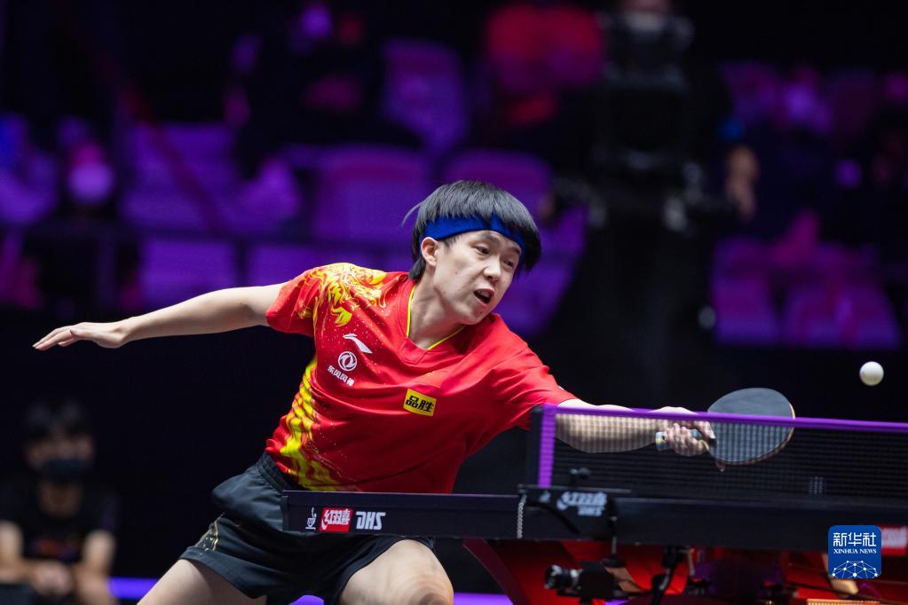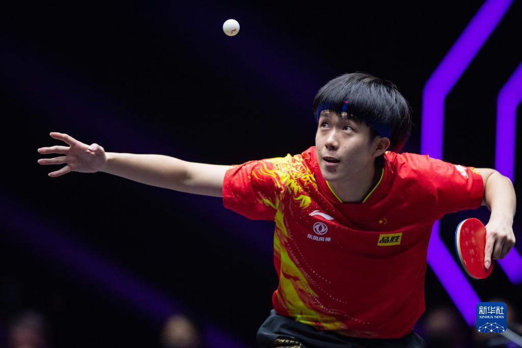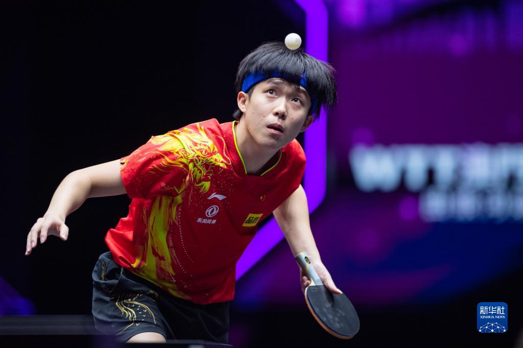10月23日,王楚钦在比赛中回球。新华社记者 张金加 摄