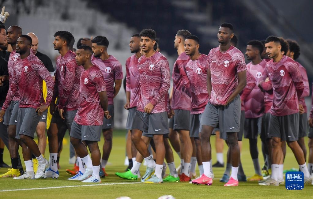 2022年10月2日,卡塔尔队球员在备战训练中。新华社发(尼库摄)