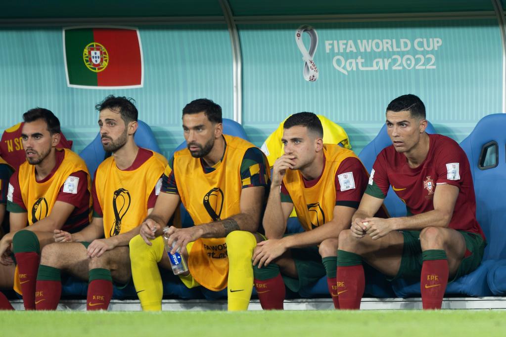 11月24日,葡萄牙队球员克·罗纳尔多(右一)在比赛中被替换下场后。新华社记者 肖艺九 摄