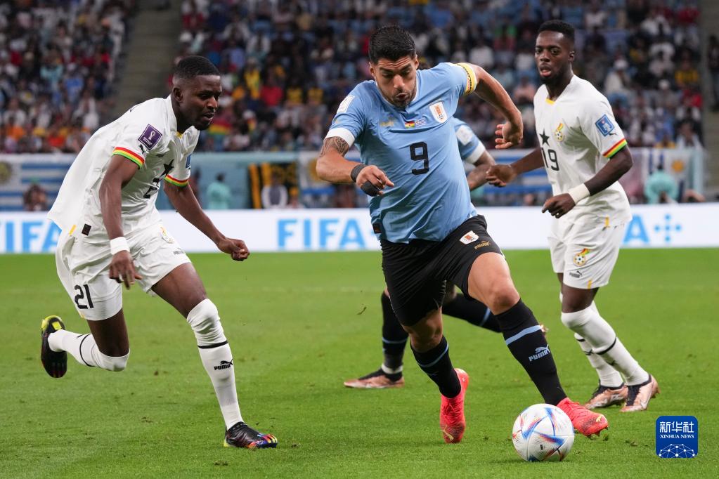 当日,在卡塔尔沃克拉贾努布球场进行的2022卡塔尔世界杯足球赛H组比赛中,乌拉圭队以2比0战胜加纳队。