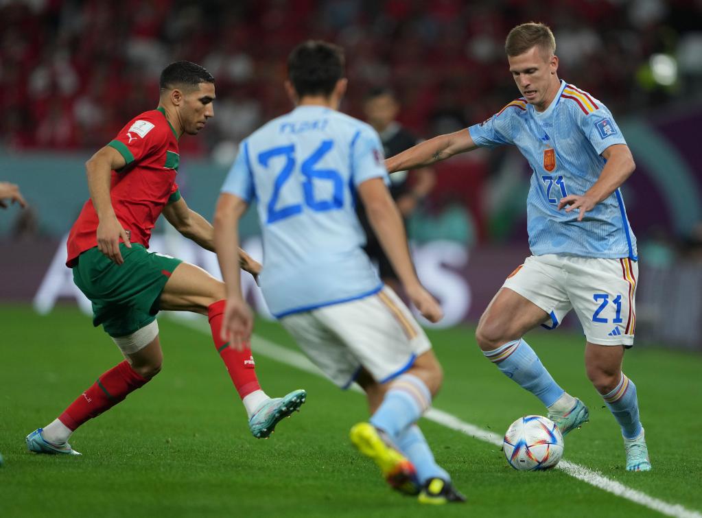 6日晚,多哈教育城球场,卡塔尔世界杯八分之一决赛,西班牙队对阵摩洛哥队。外界将这场比赛喻为“矛盾之争”:一方小组赛曾7:0大胜哥斯达黎加队;一方在三场小组赛中只丢了一个球。