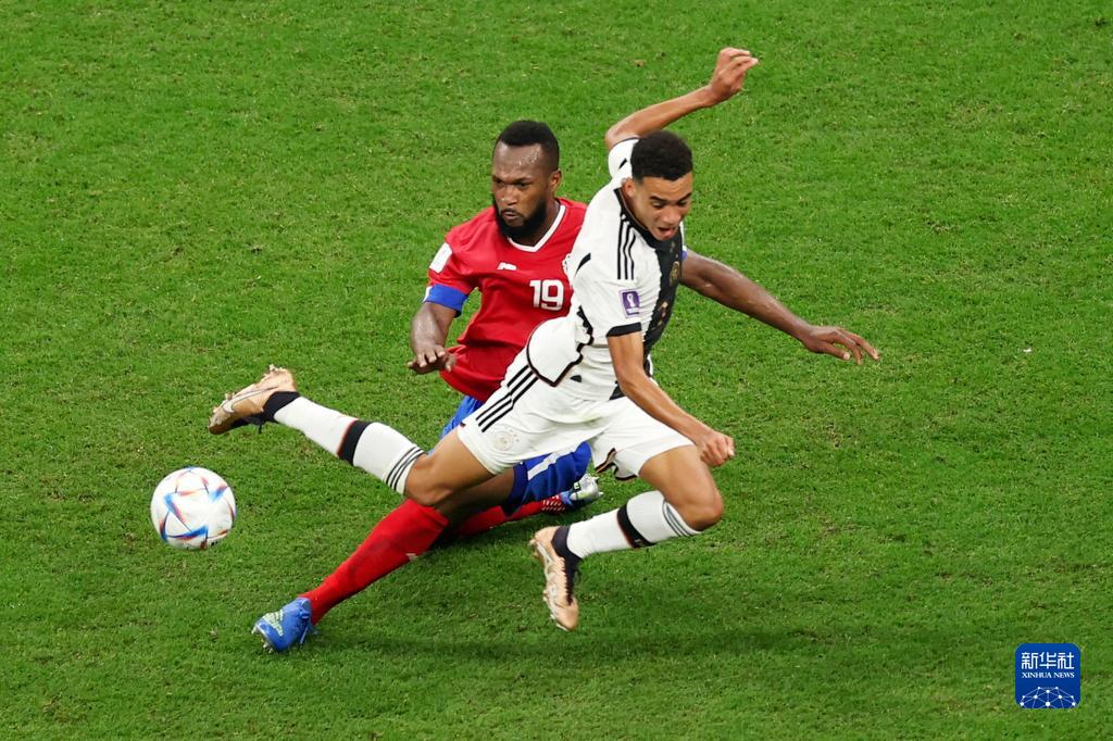 12月1日,德国队“00后”球员穆夏拉(前)在与哥斯达黎加队的比赛中。新华社记者 潘昱龙 摄