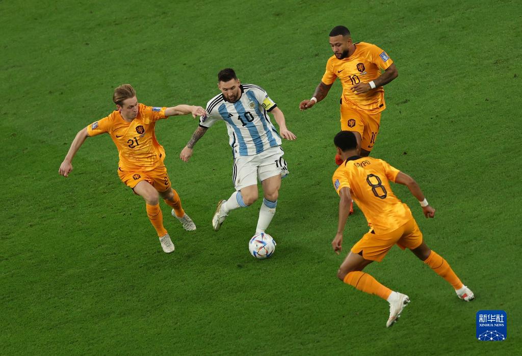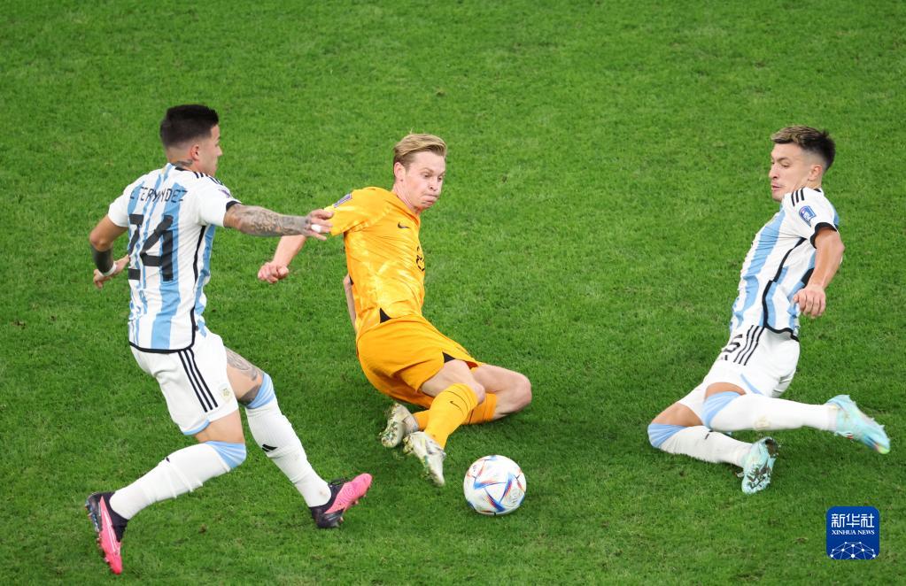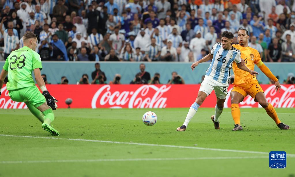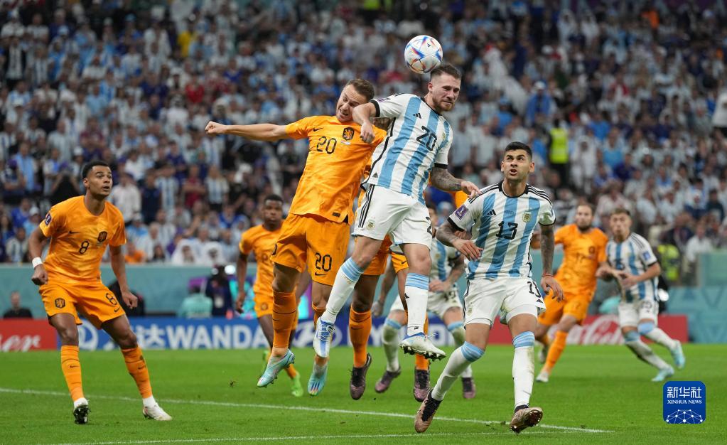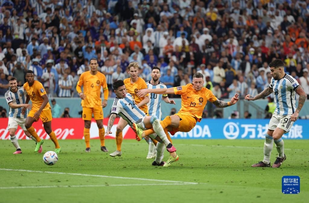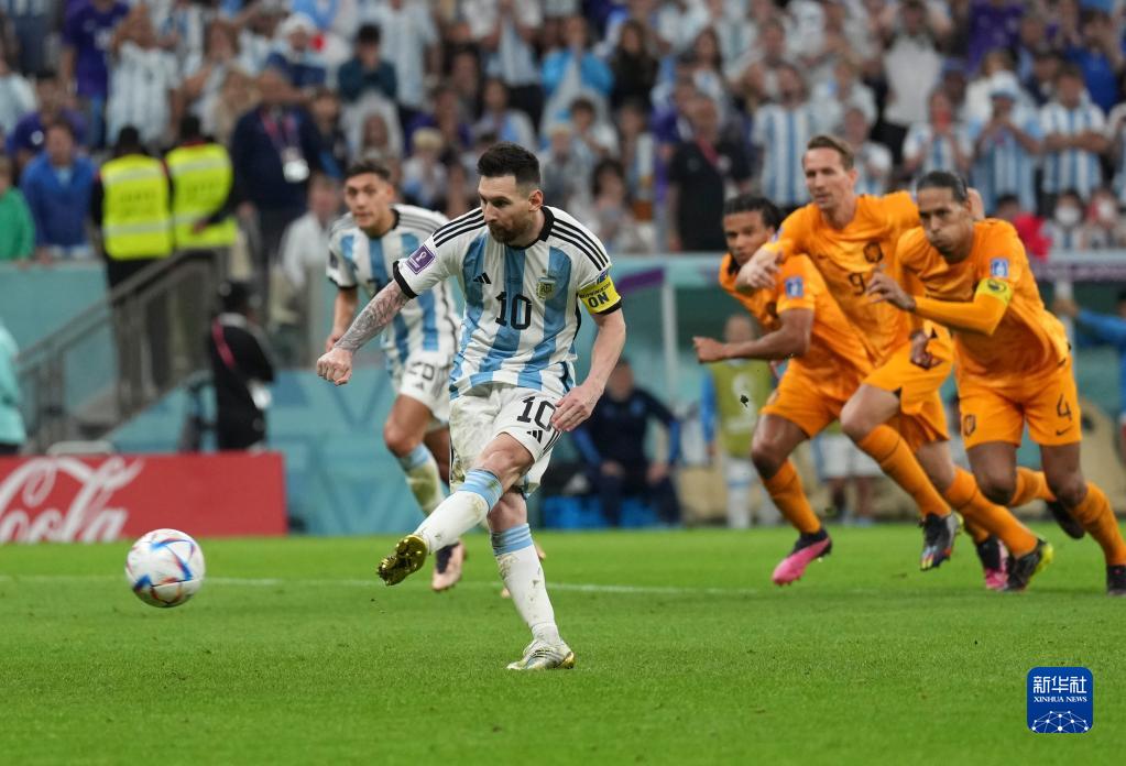 当日,在卡塔尔卢赛尔球场进行的2022卡塔尔世界杯足球赛四分之一决赛中,阿根廷队与荷兰队在常规时间和加时赛战成2比2平,通过点球大战阿根廷队以总比分6比5获胜。