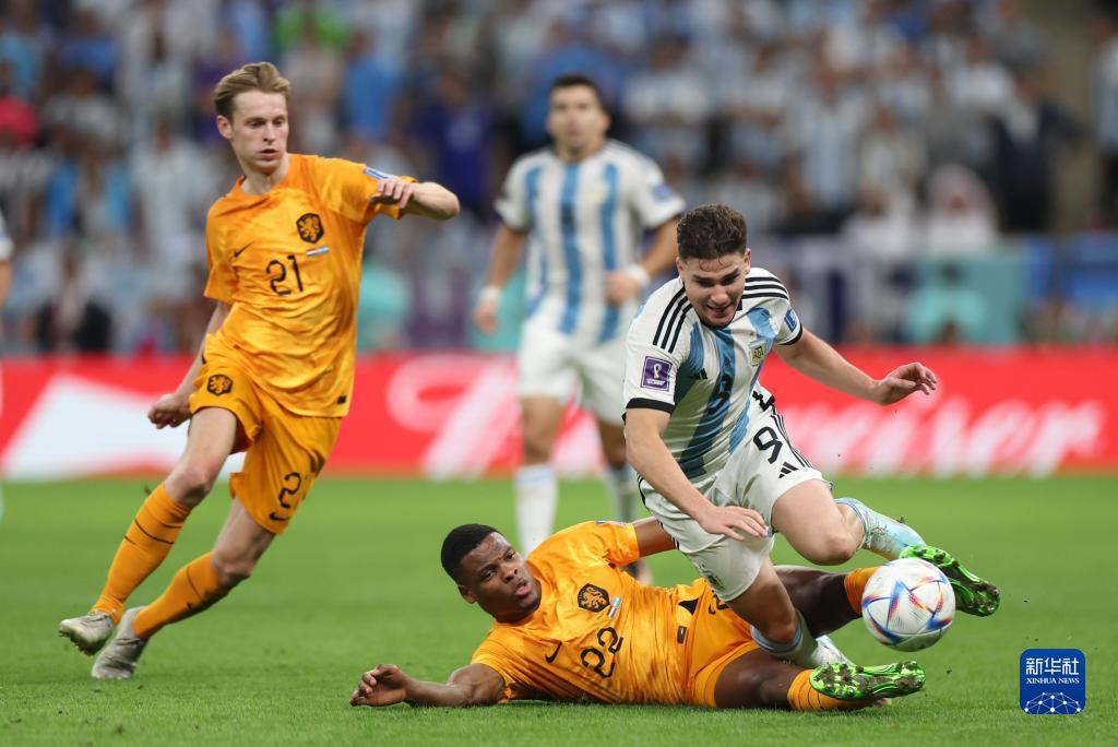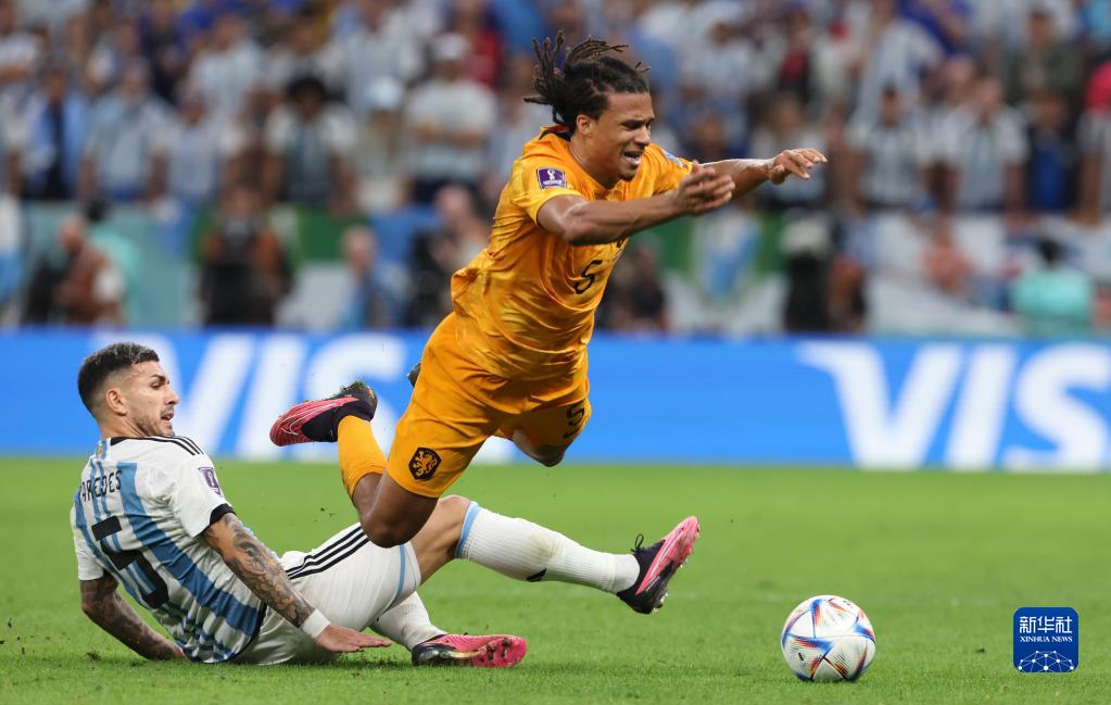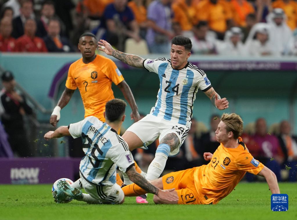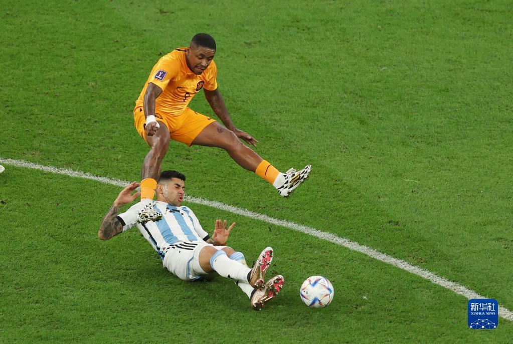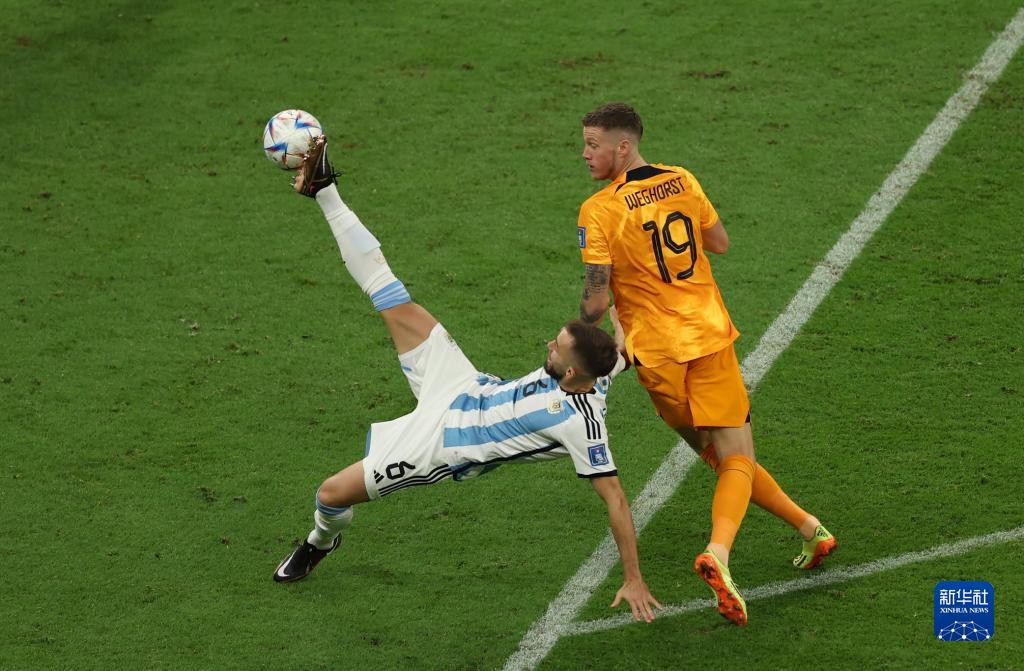当日,在卡塔尔卢赛尔球场进行的2022卡塔尔世界杯足球赛四分之一决赛中,阿根廷队与荷兰队在常规时间和加时赛战成2比2平,通过点球大战阿根廷队以总比分6比5获胜。