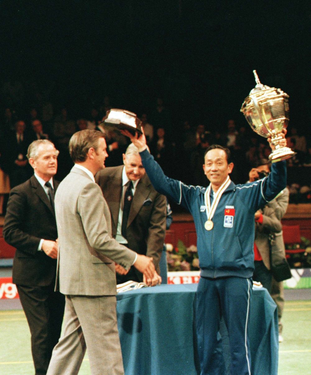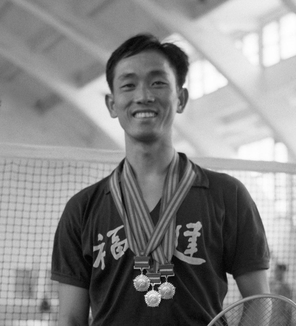 1982年中国羽毛球队获得汤姆斯杯冠军时担任教练员的王文教。新华社发