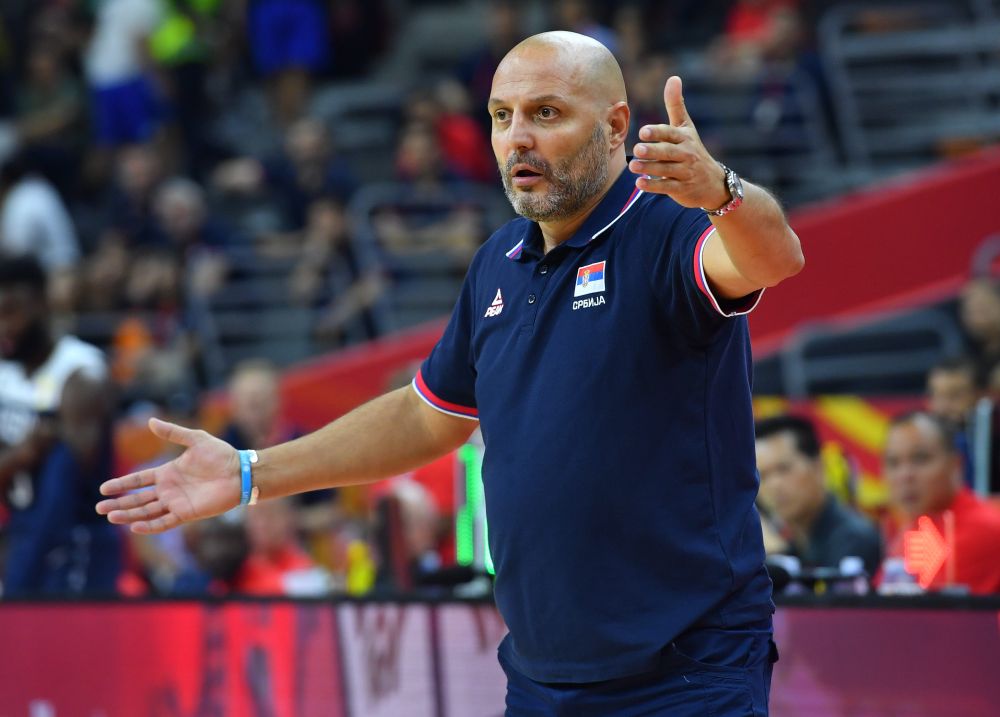 2019年9月12日,时任塞尔维亚队主教练的乔尔杰维奇在广东东莞举行的2019年国际篮联篮球世界杯中的资料照片。新华社记者朱峥摄