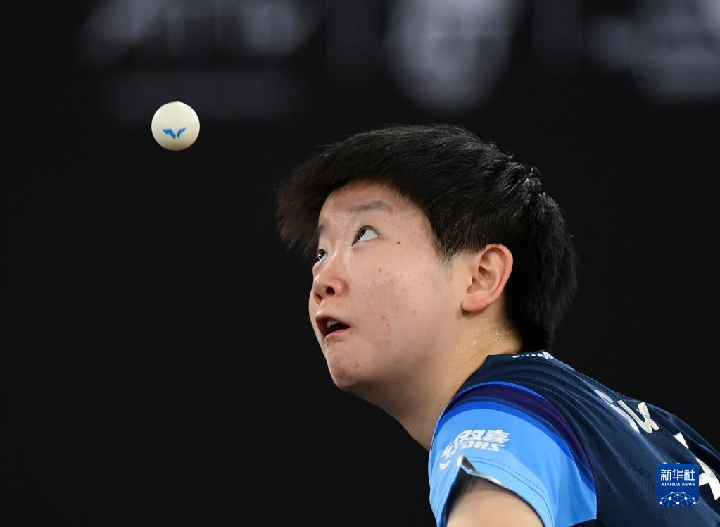 1月10日,中国选手孙颖莎在比赛中发球。新华社发(尼库摄)