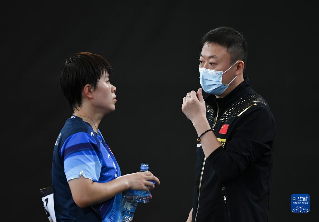 1月10日,中国国家乒乓球队女队主教练马琳(右)在比赛中指导王艺迪。新华社发(尼库摄)