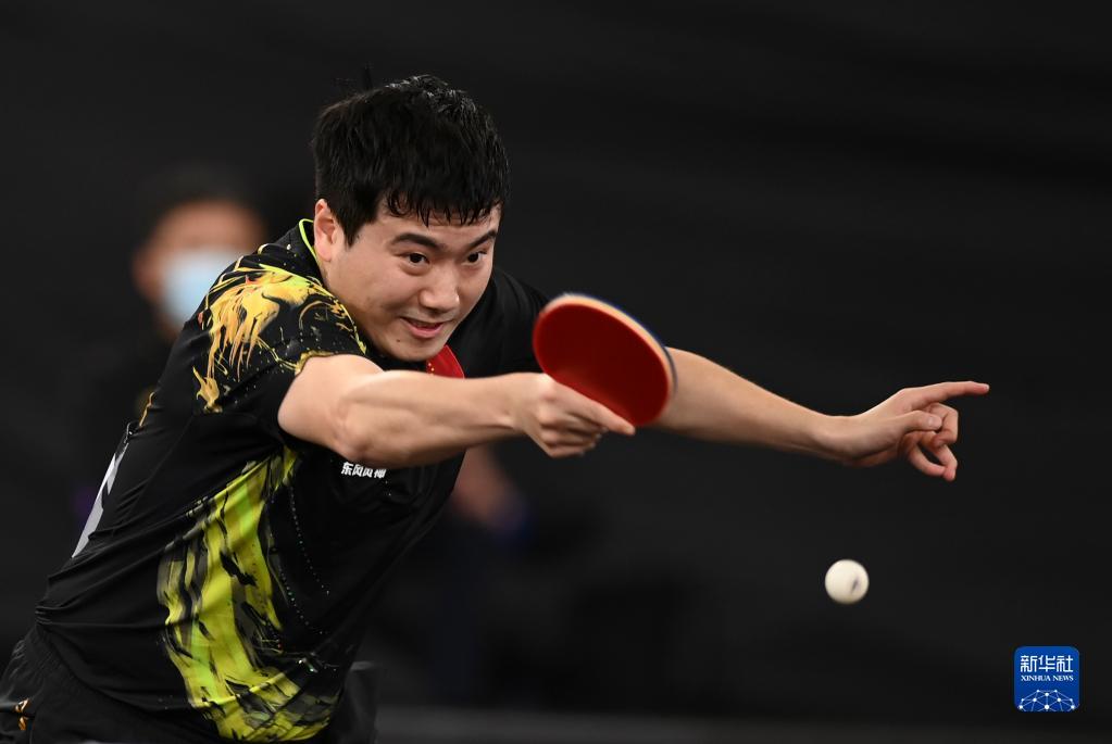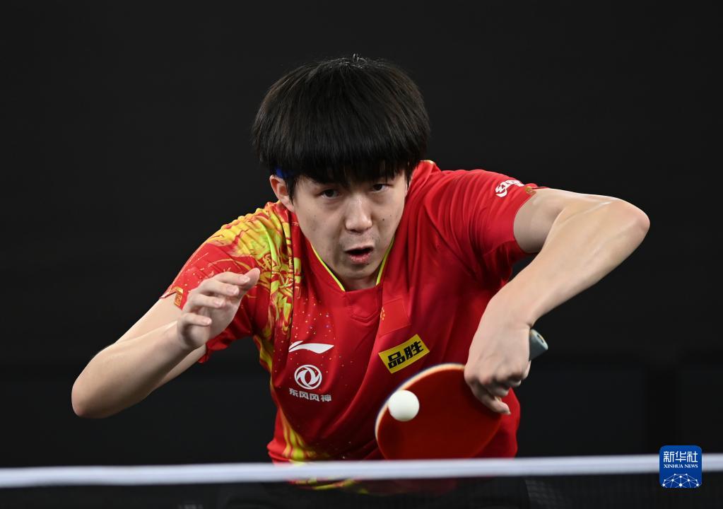1月10日,中国选手王楚钦在比赛中回球。新华社发(尼库摄)