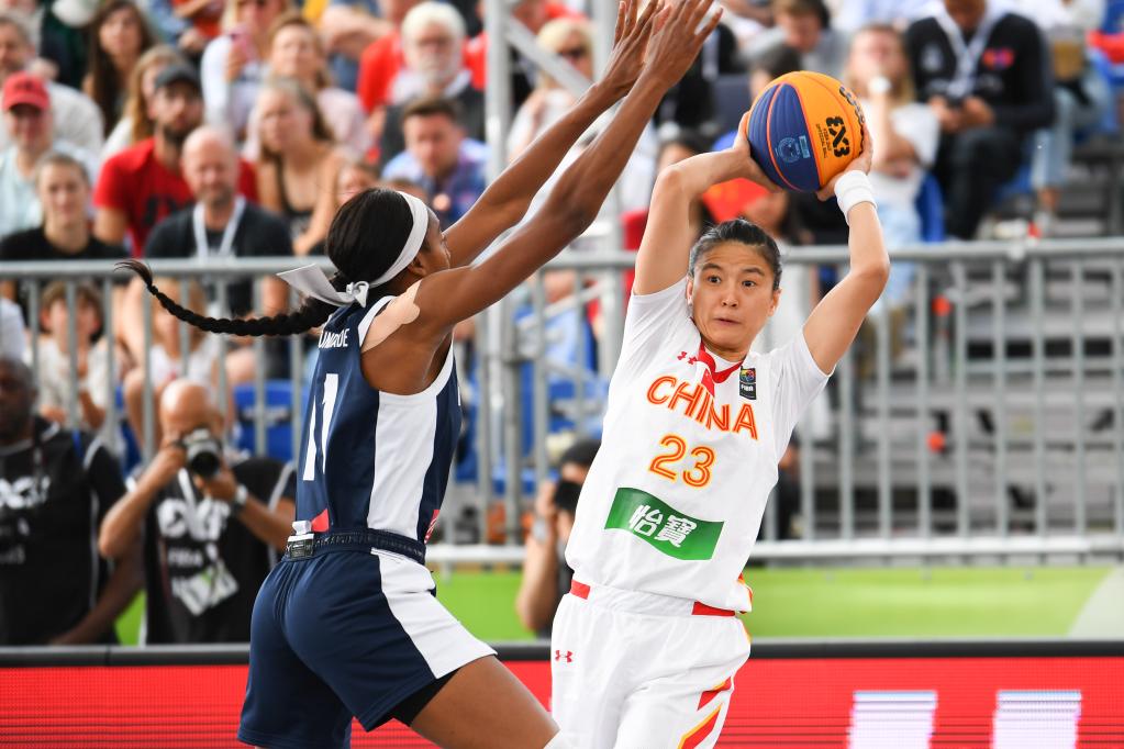 2022年6月26日,中国队球员王丽丽(右)在2022国际篮联三人篮球世界杯女子组半决赛中传球。新华社记者 任鹏飞 摄