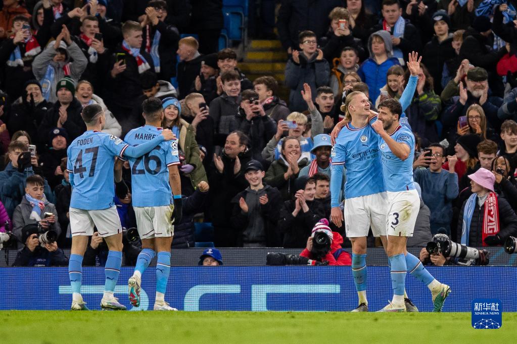 当日,在英国曼彻斯特举行的2022-2023赛季欧洲足球冠军联赛八分之一决赛次回合比赛中,英超曼彻斯特城队主场以7比0战胜德甲莱比锡队,从而以8比1的总比分晋级八强。