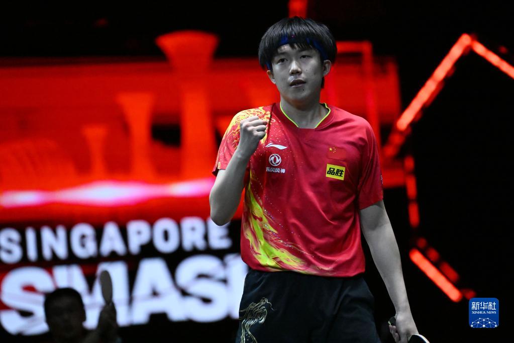 当日,在WTT新加坡大满贯男单八分之一决赛中,中国选手王楚钦以3比0战胜新加坡选手郭勇,晋级八强。