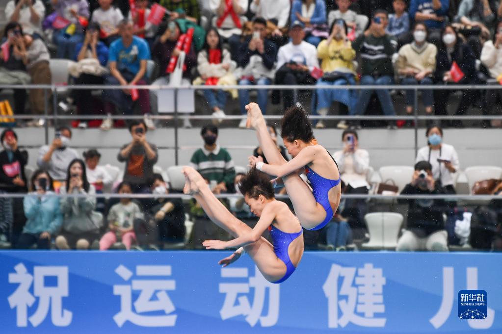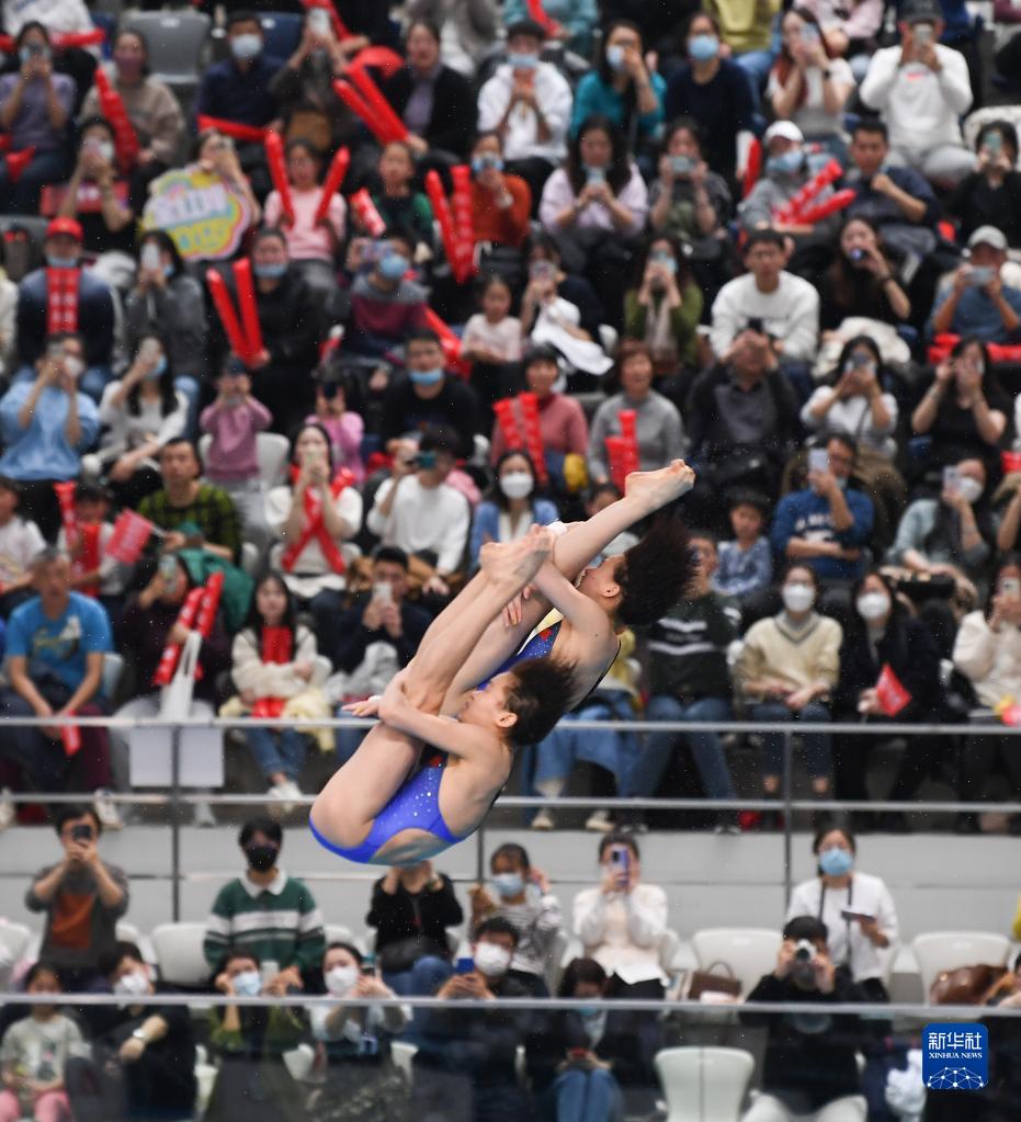 当日,在上海举行的2023年全国跳水冠军赛女子双人10米跳台决赛中,全红婵(广东)/陈芋汐(上海)组合以362.04分的总成绩夺得冠军。