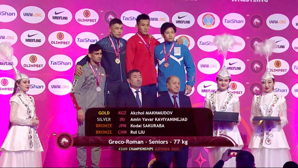伊朗队成为当日比赛的最大赢家,获得5个男子古典式公斤级项目中的4枚金牌,展现出强大实力。吉尔吉斯斯坦摔跤名将、东京奥运会银牌得主马哈茂多夫获得男子古典式摔跤77公斤级金牌。
