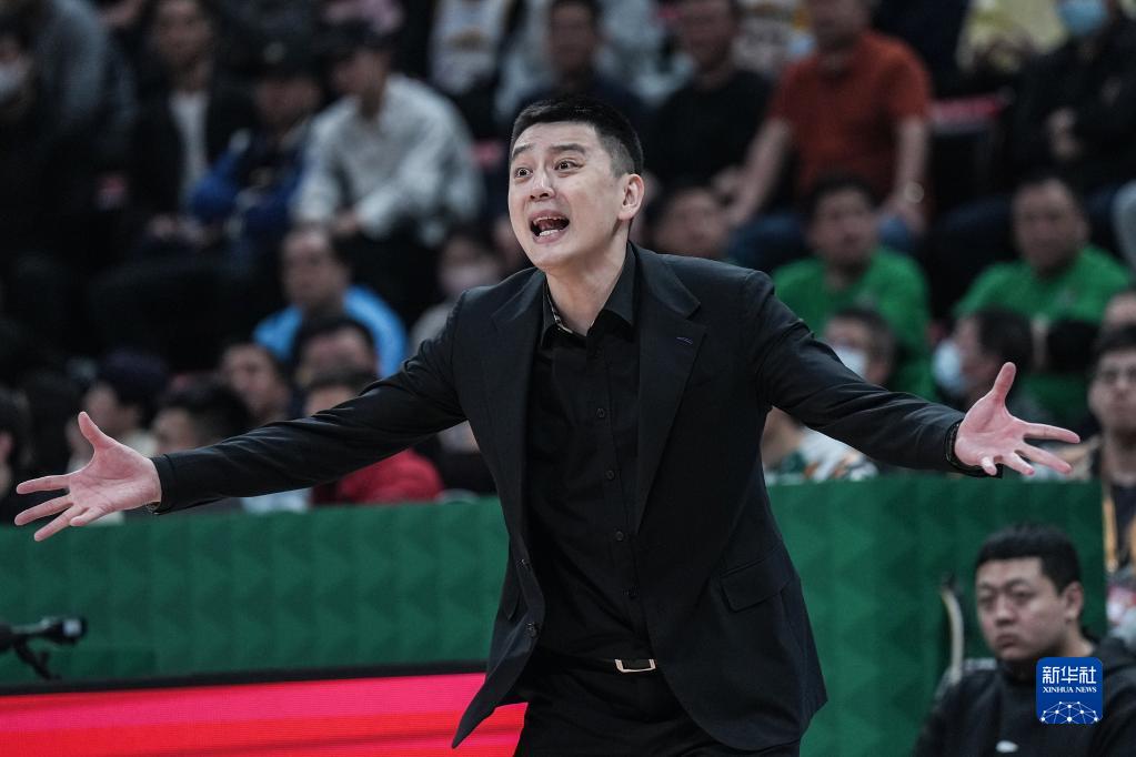 4月18日,辽宁本钢队主教练杨鸣在场边指挥。新华社记者 潘昱龙 摄