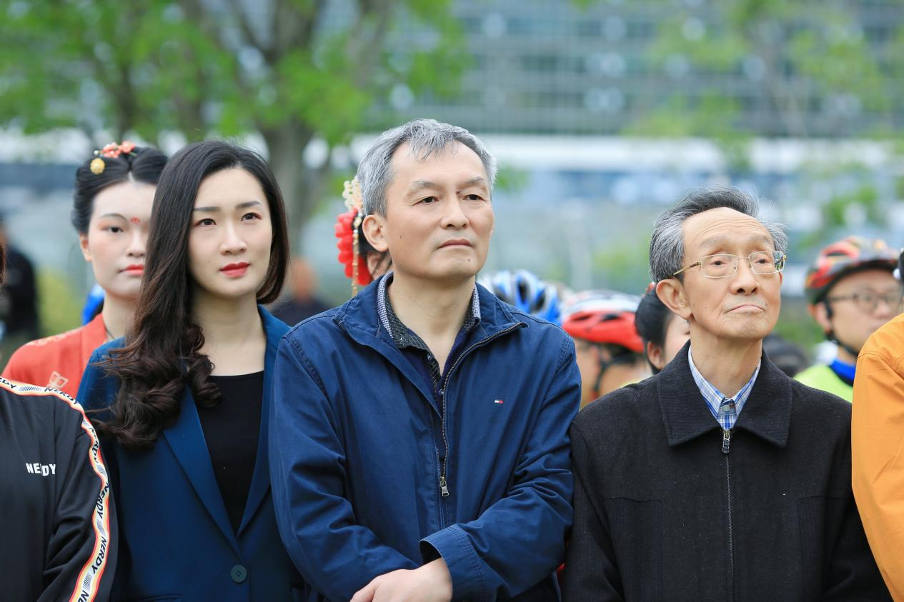 图为王庭科(右一)、孙小松(中)、孙可心(左一)在四川大学全球校友骑行活动现场。受访者供图