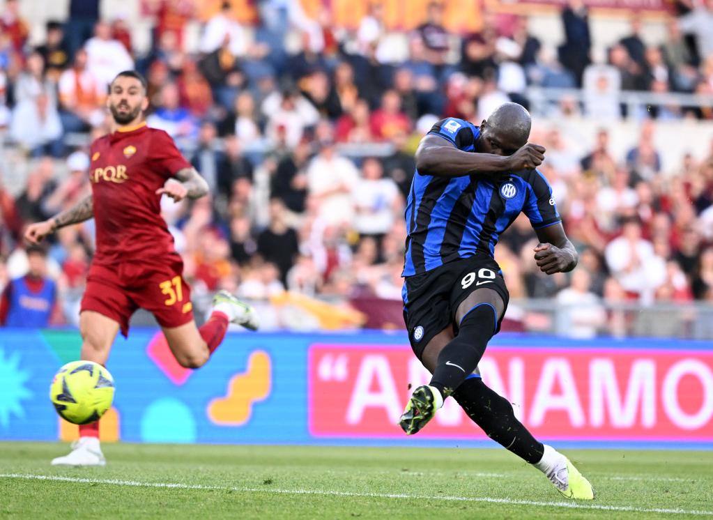 5月6日,国际米兰队球员卢卡库(右)在比赛中攻入进球。新华社发(阿尔贝托·林格利亚摄)