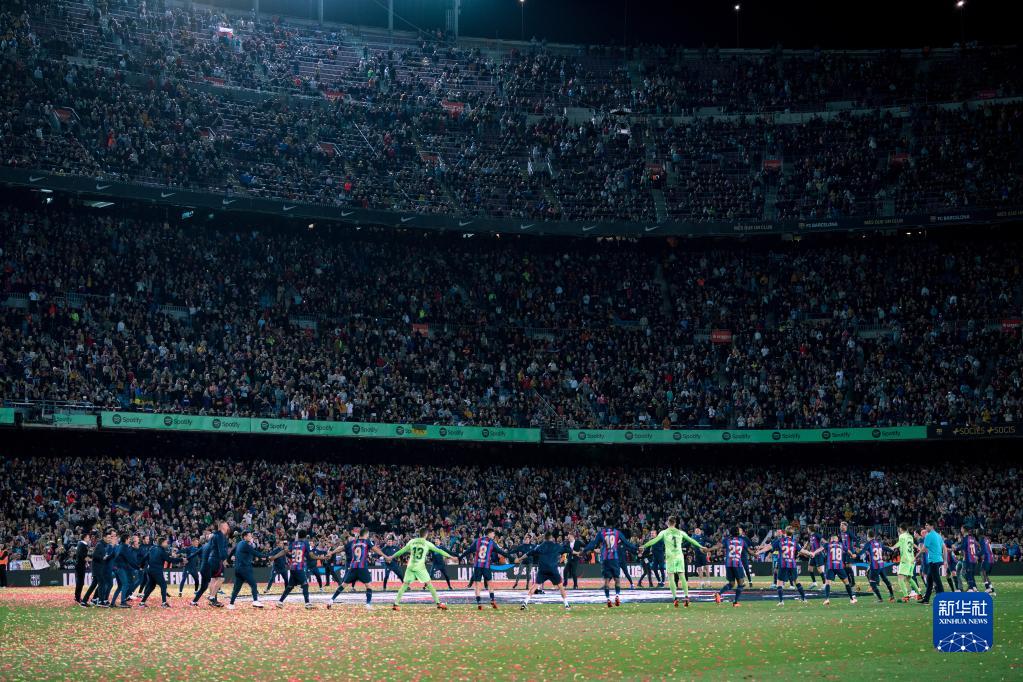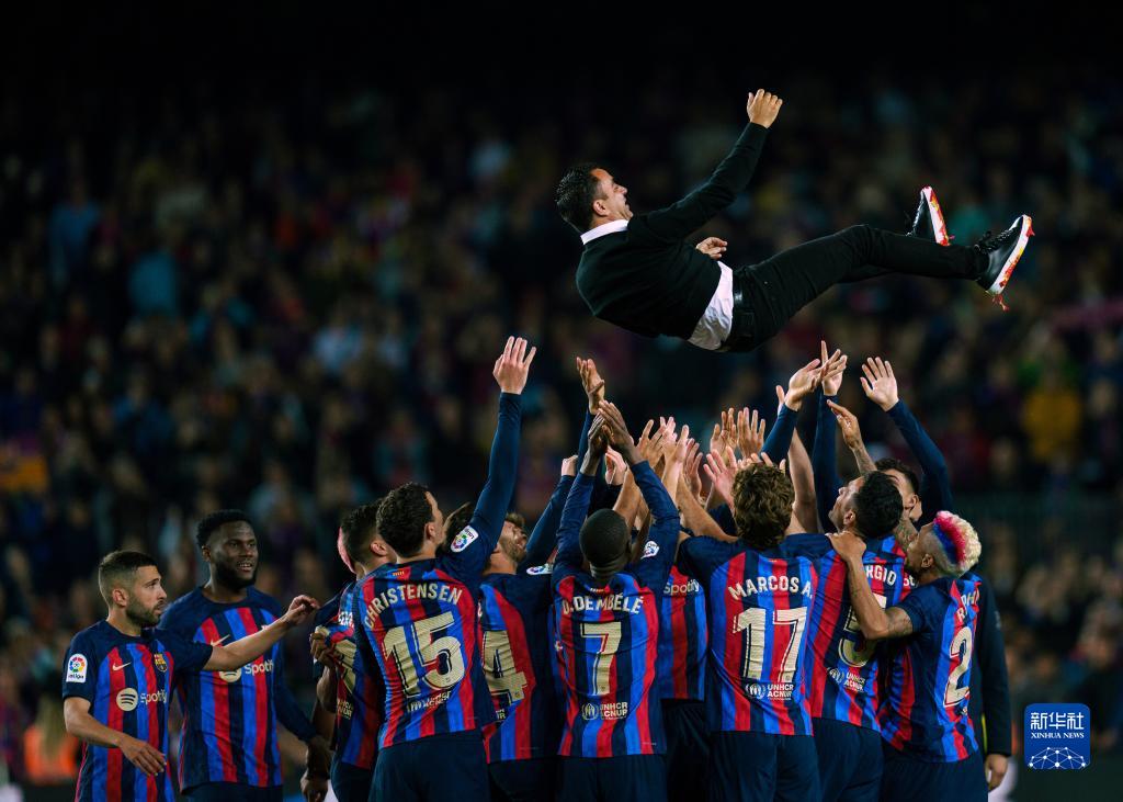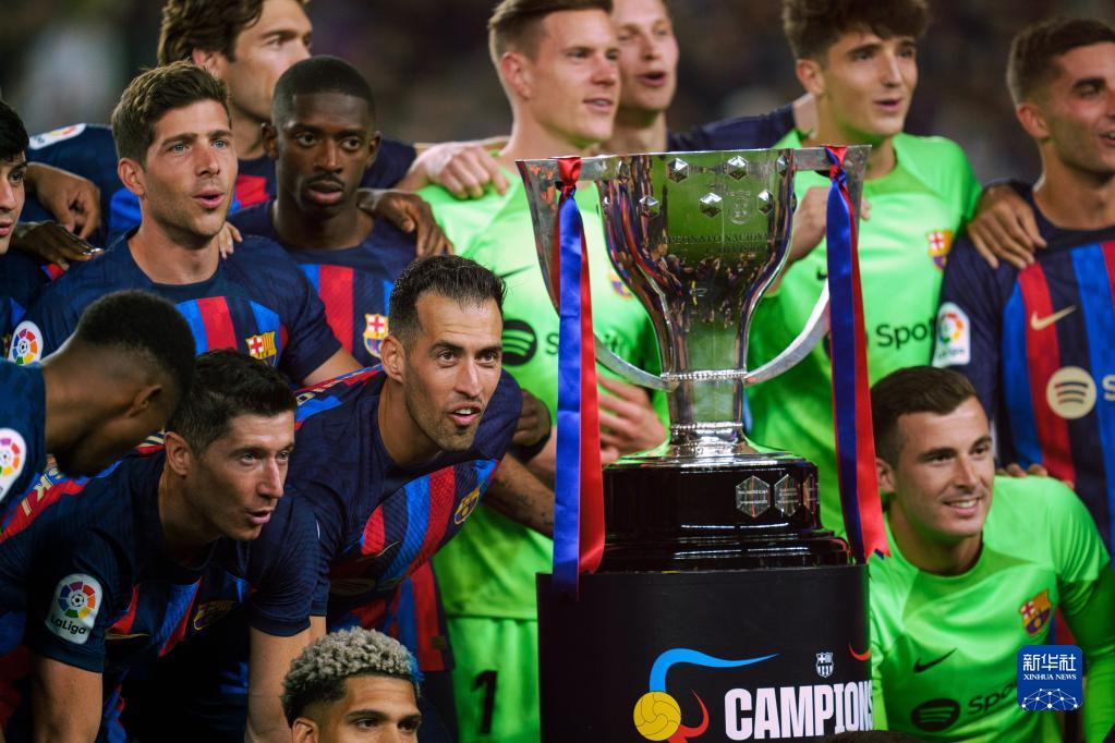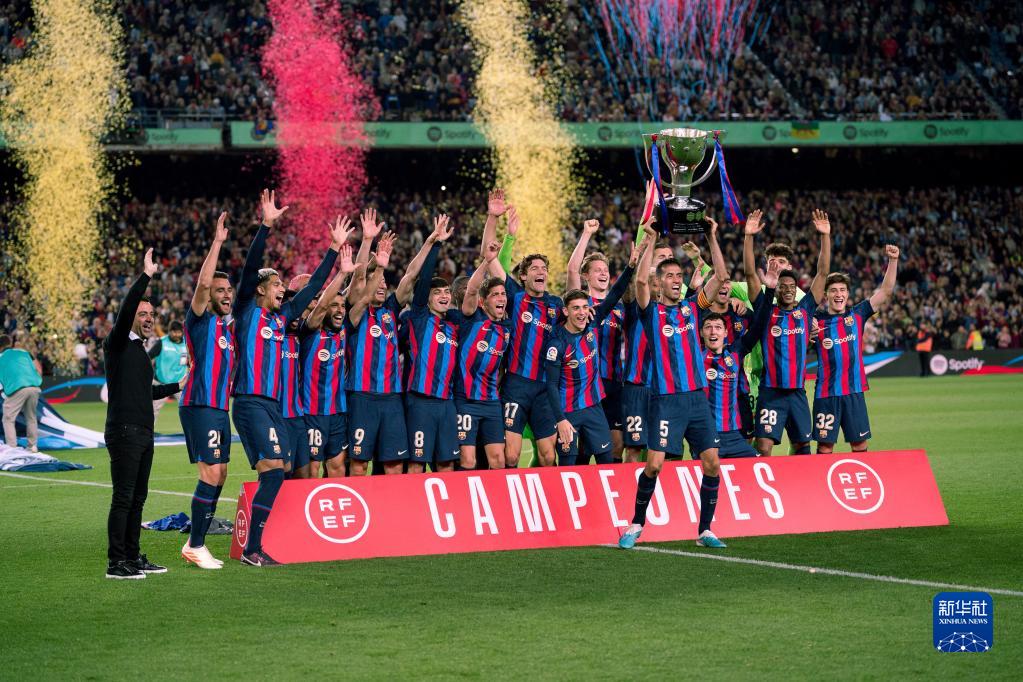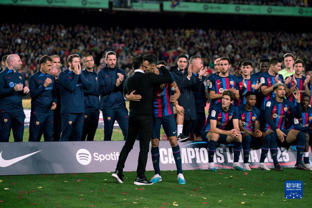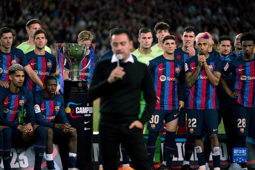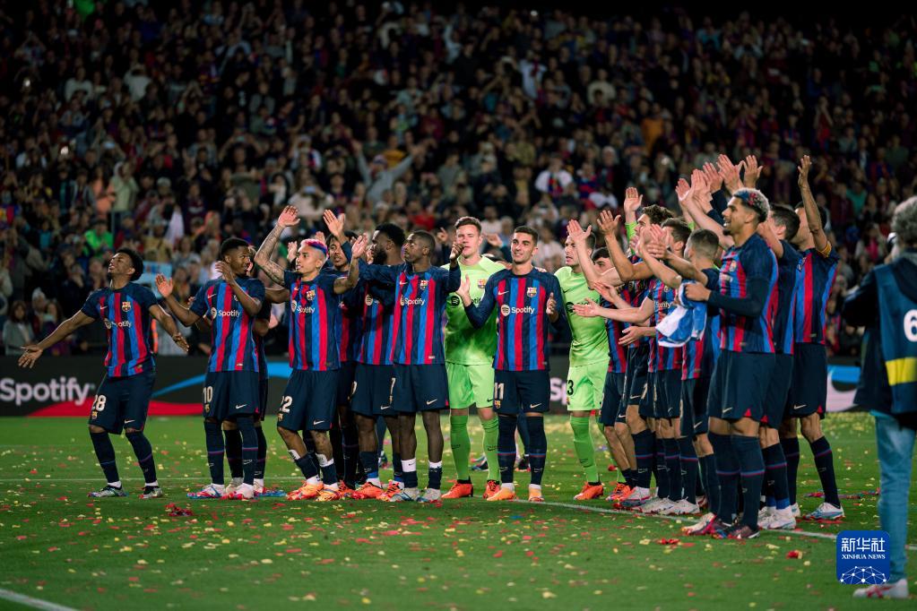 当日,在2022-2023赛季西班牙足球甲级联赛第35轮巴塞罗那队主场对阵皇家社会队的比赛后,巴塞罗那队举行仪式庆祝夺得联赛冠军。在第34轮客场击败西班牙人队后,巴塞罗那队提前四轮夺冠。