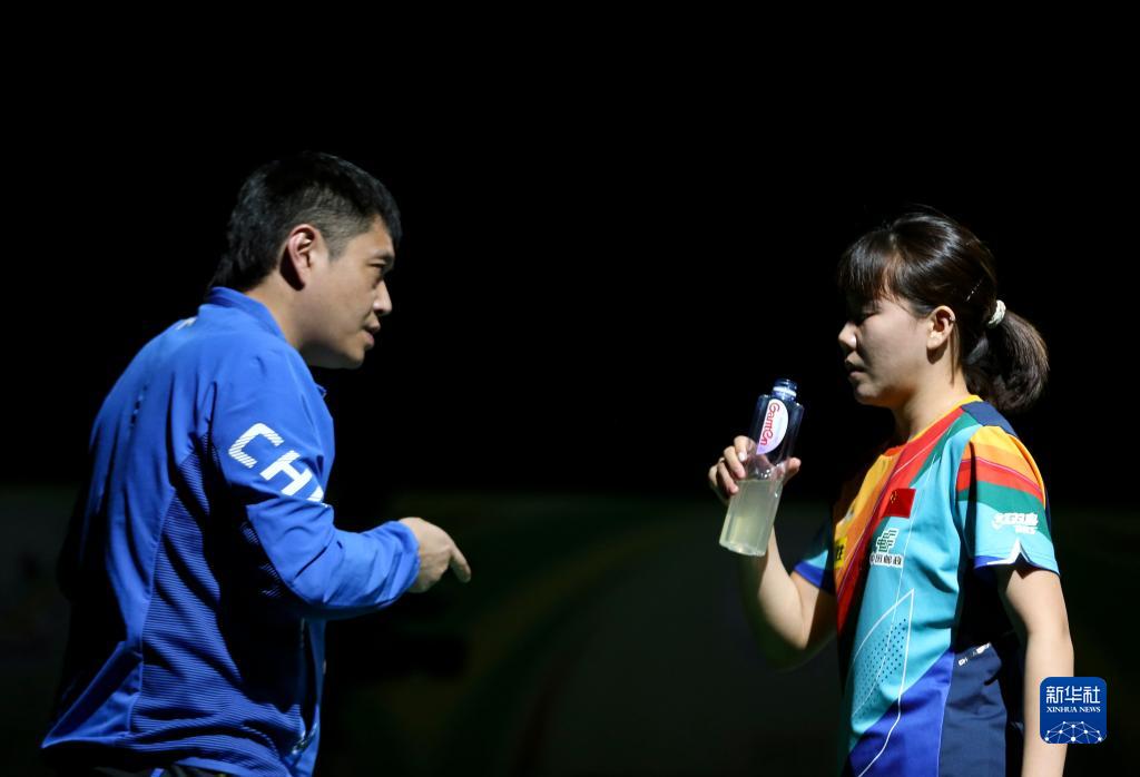 5月23日,教练邱贻可在比赛间隙指导陈幸同(右)。新华社记者 张誉东 摄