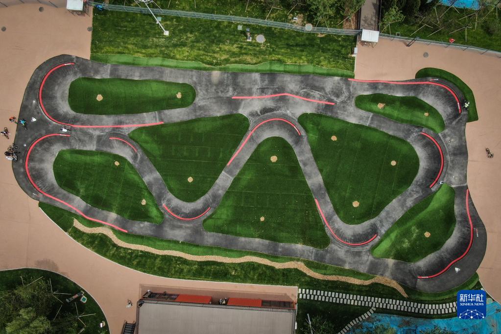 这是5月27日拍摄的沈阳国际泵道公园内的一条泵道(无人机照片)。新华社记者 潘昱龙 摄