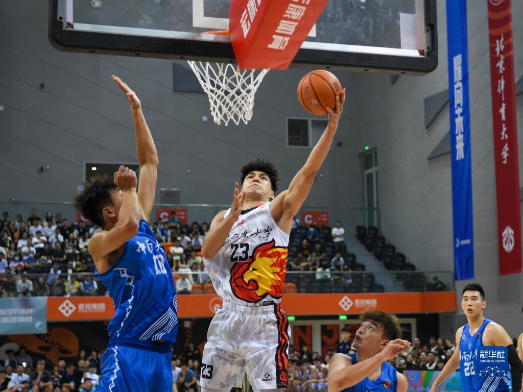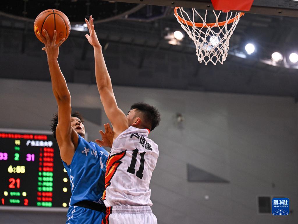 6月16日,广东工业大学队球员陈国豪(右)在比赛中上篮。新华社记者 胥冰洁 摄