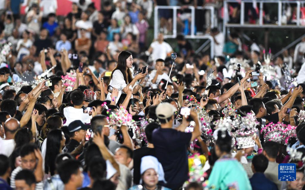 6月17日,观众在拍摄中场休息时间表演的民族歌舞。新华社记者 杨文斌 摄