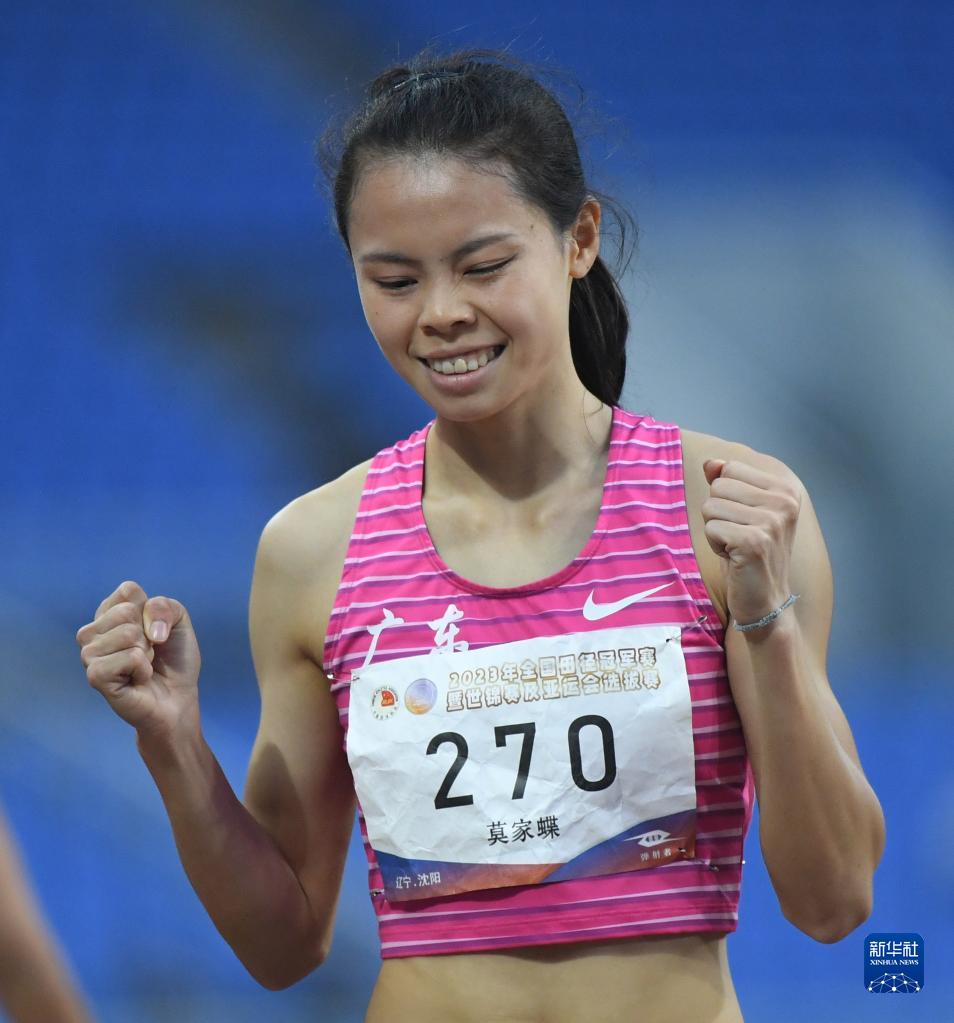 当日,在辽宁省沈阳市举行的2023年全国田径冠军赛暨世锦赛及亚运会选拔赛女子400米栏决赛中,广东队选手莫家蝶以55秒55的成绩获得冠军。