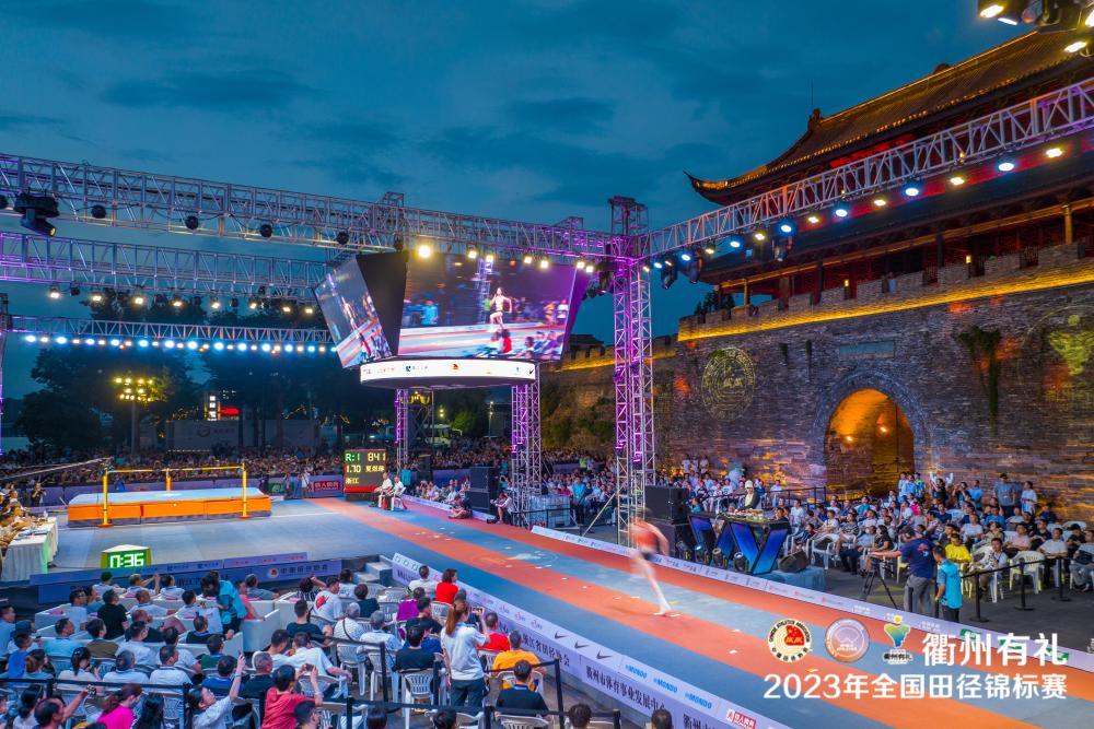 新华社浙江衢州7月22日电(记者吴俊宽、王沁鸥)2023年全国田径锦标赛开幕式21日晚在浙江省衢州市体育中心举行。而一天之前,本项赛事的女子跳高比赛已经在水亭门历史文化街区内的水亭门广场提前上演。