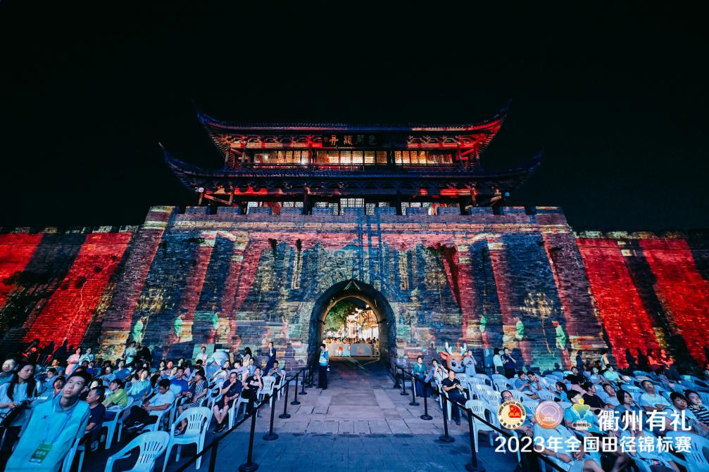 20日晚的女子跳高比赛现场,古城墙上光影闪动、美轮美奂,临时搭建的比赛场内音乐劲爆、气氛高涨。经过时尚化包装的竞技赛事与衢州古城厚重的文化底蕴产生奇妙的化学反应,为现场观众呈现出别样的视觉盛宴。