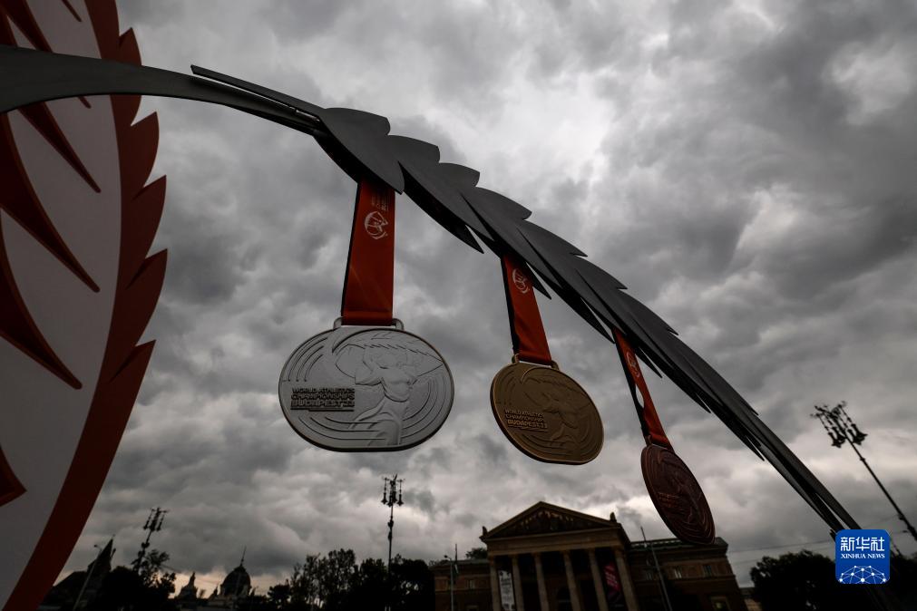 这是8月19日拍摄的竞走决赛场地放置的奖牌。新华社记者 李明 摄