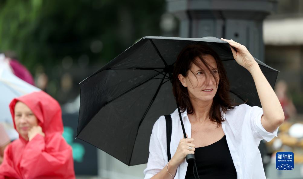 8月19日,一名观众撑伞站在赛道边。新华社记者 李颖 摄