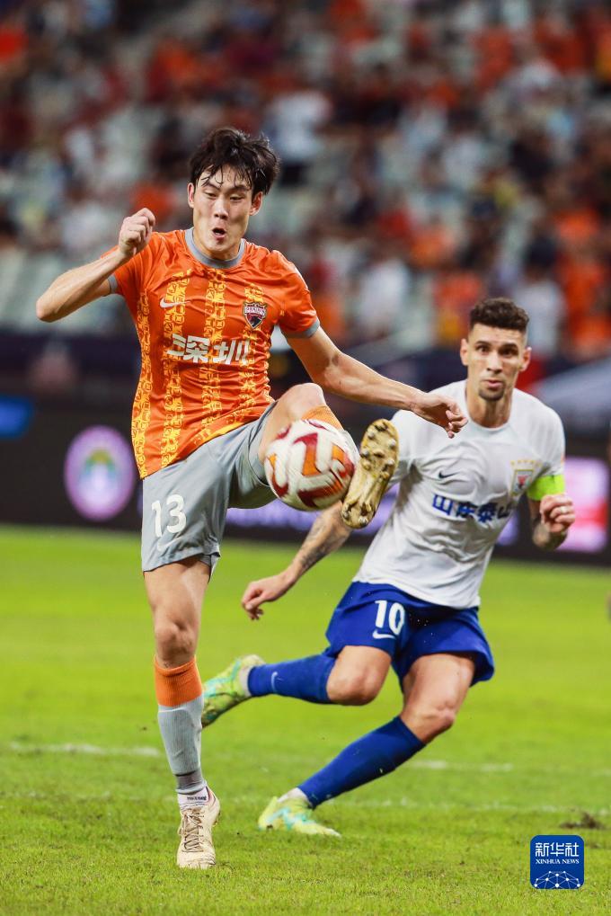 当日,在广东深圳举行的2023赛季中国足球协会超级联赛第24轮比赛中,山东泰山队客场以2比1战胜深圳队。