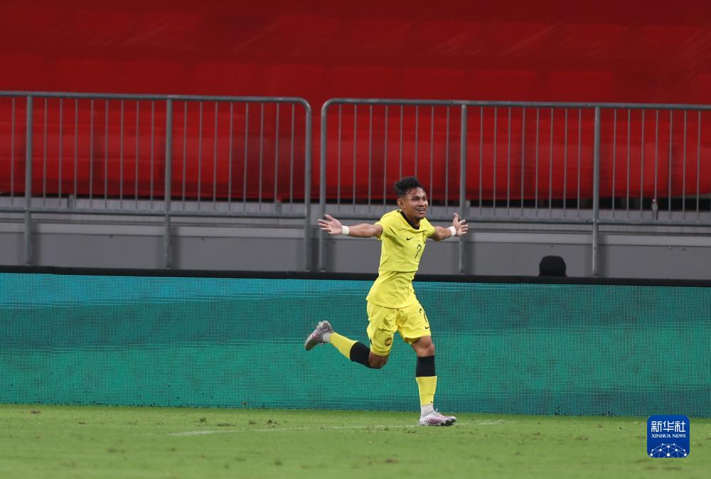 9月9日,马来西亚队球员法塞尔·哈利姆进球后庆祝。