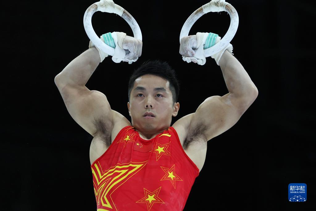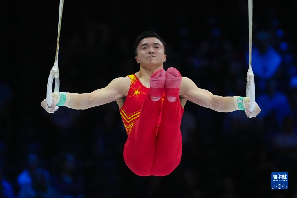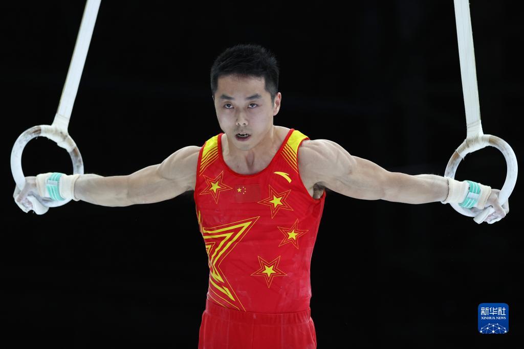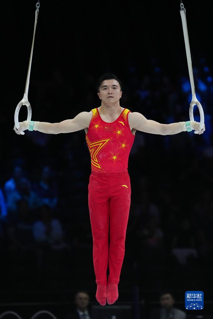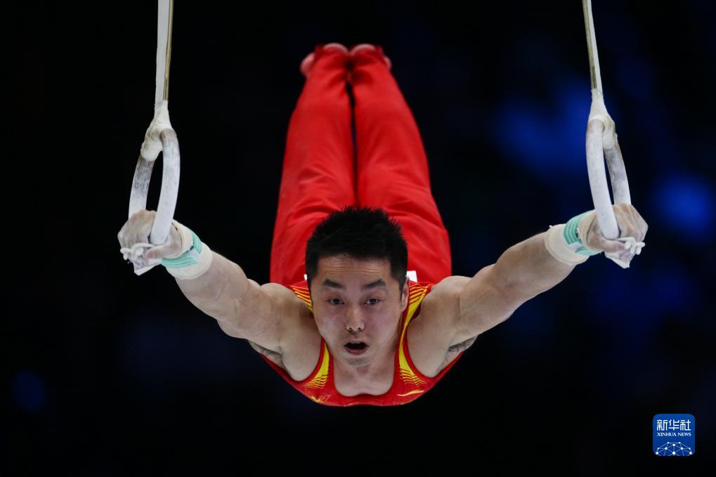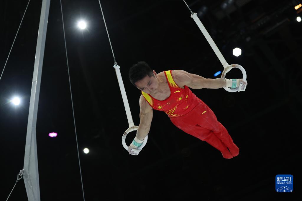 10月3日,中国队选手尤浩在吊环项目比赛中。新华社记者 郑焕松 摄