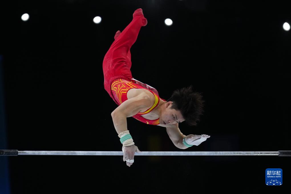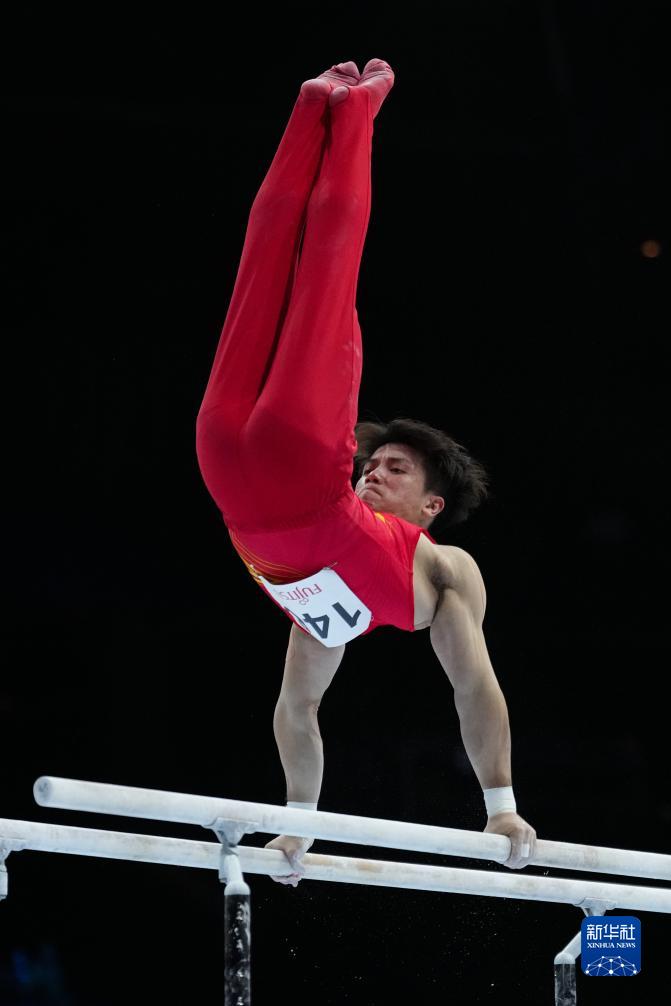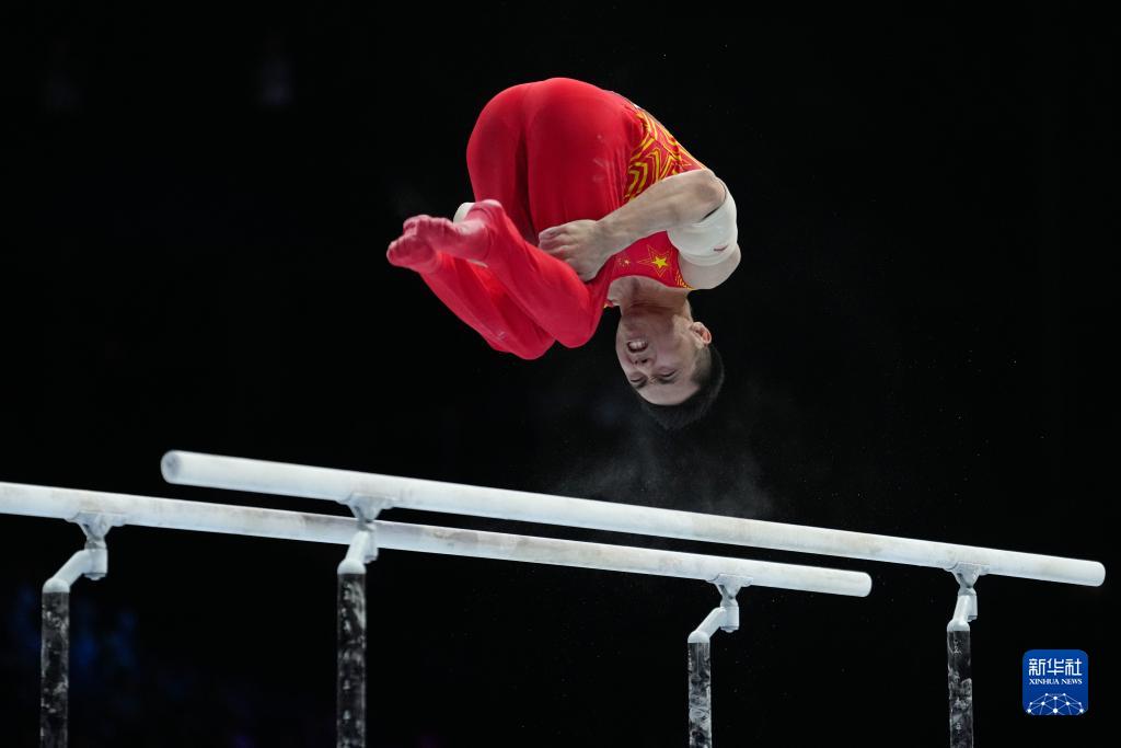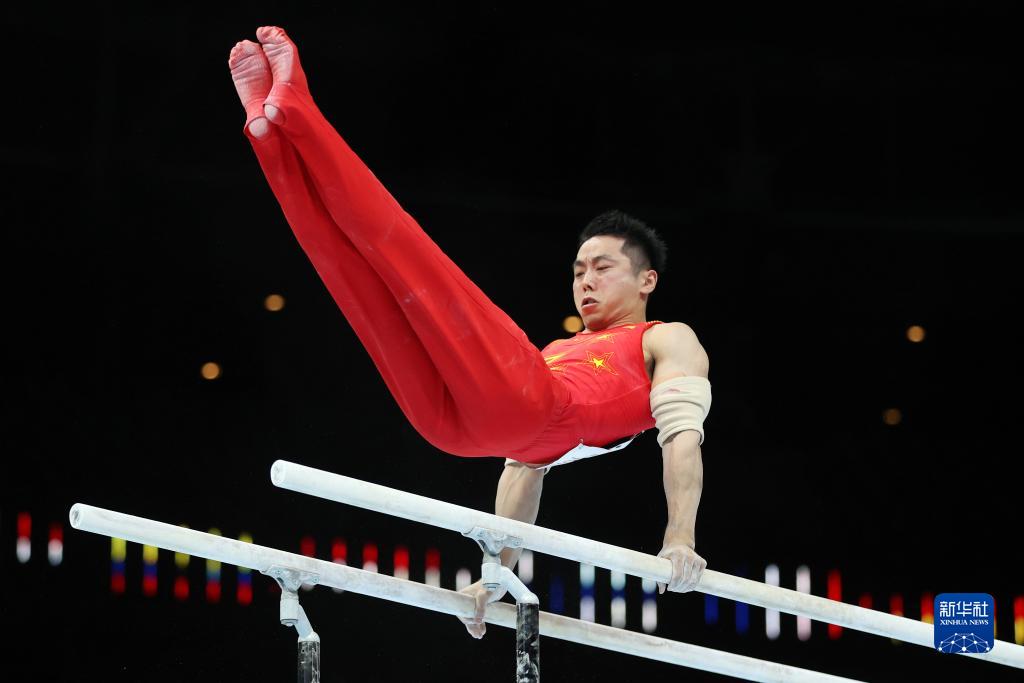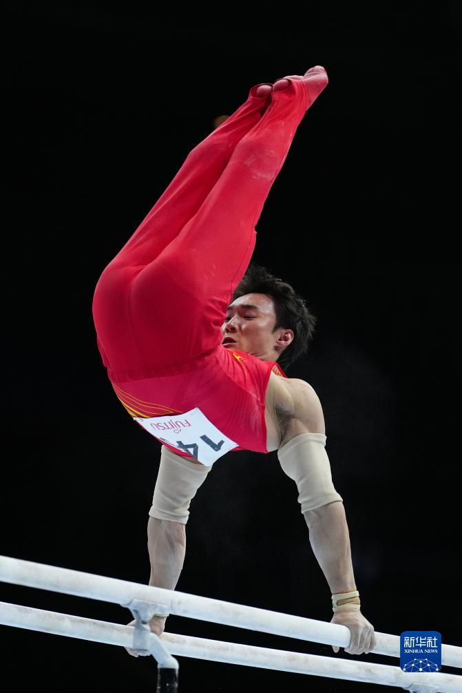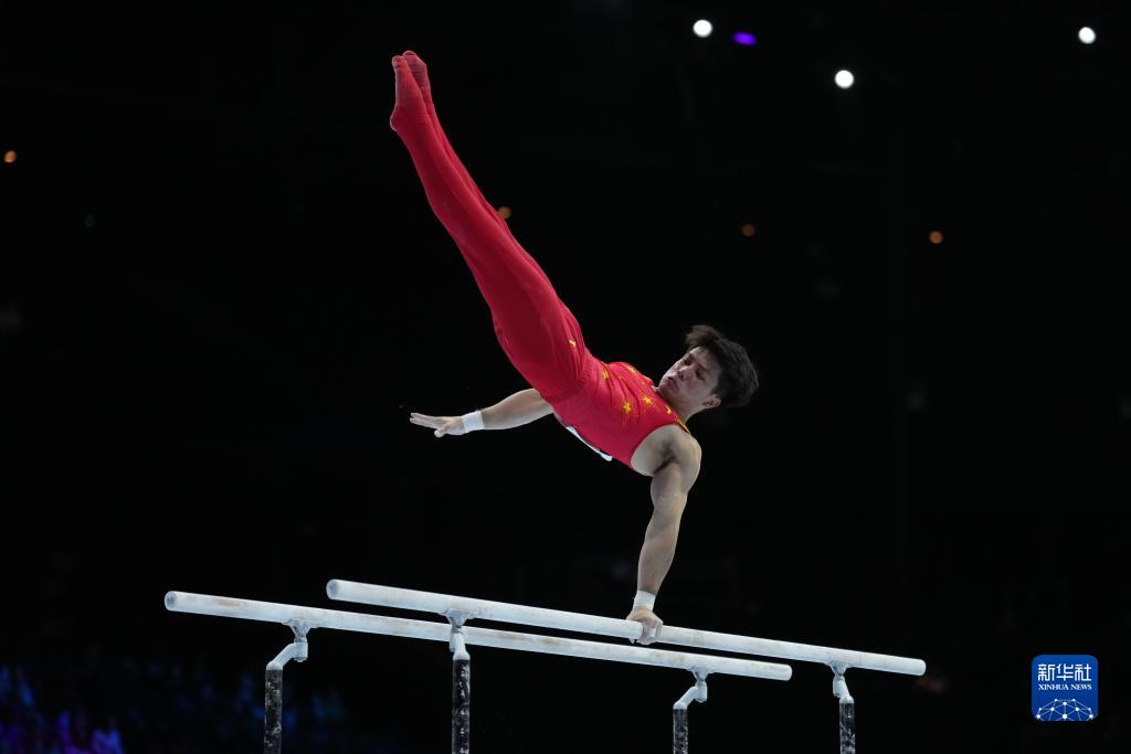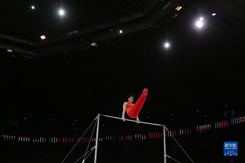 10月3日,中国队选手尤浩在双杠项目比赛中。新华社记者 郑焕松 摄