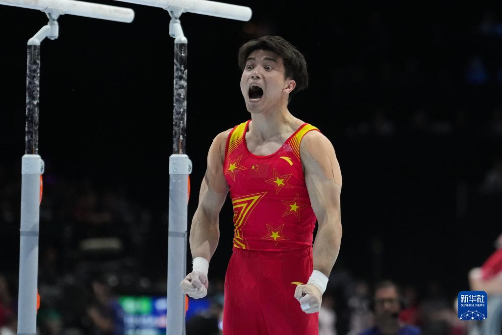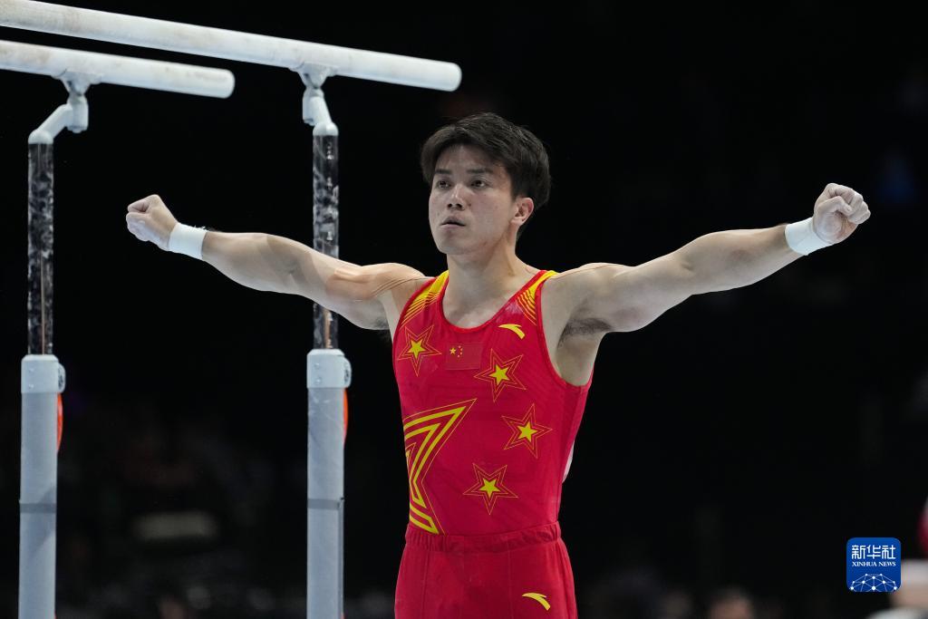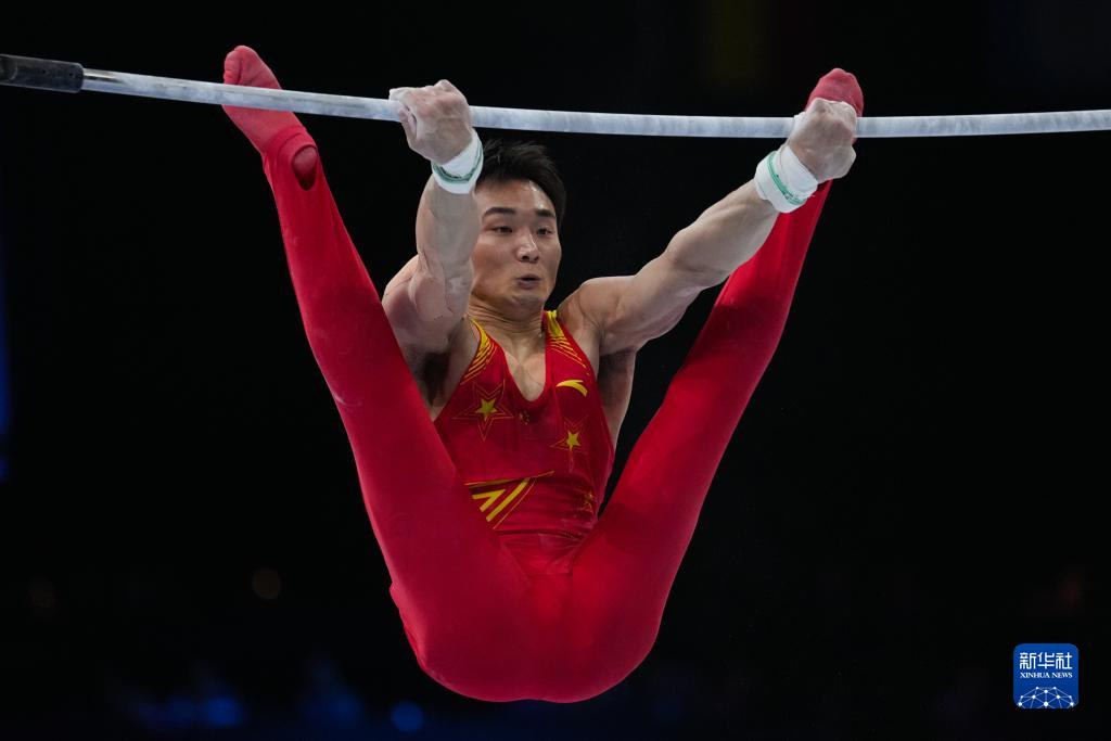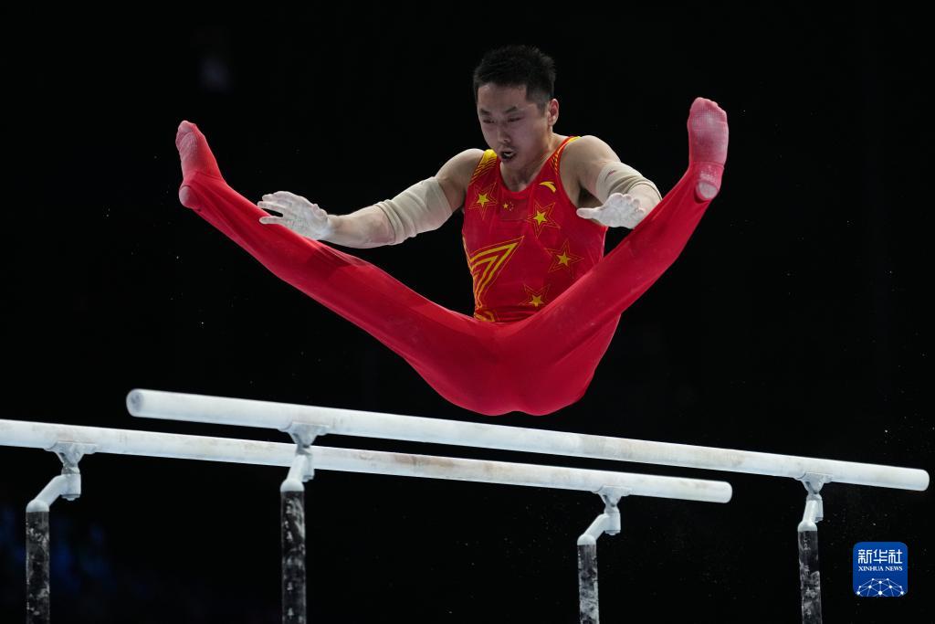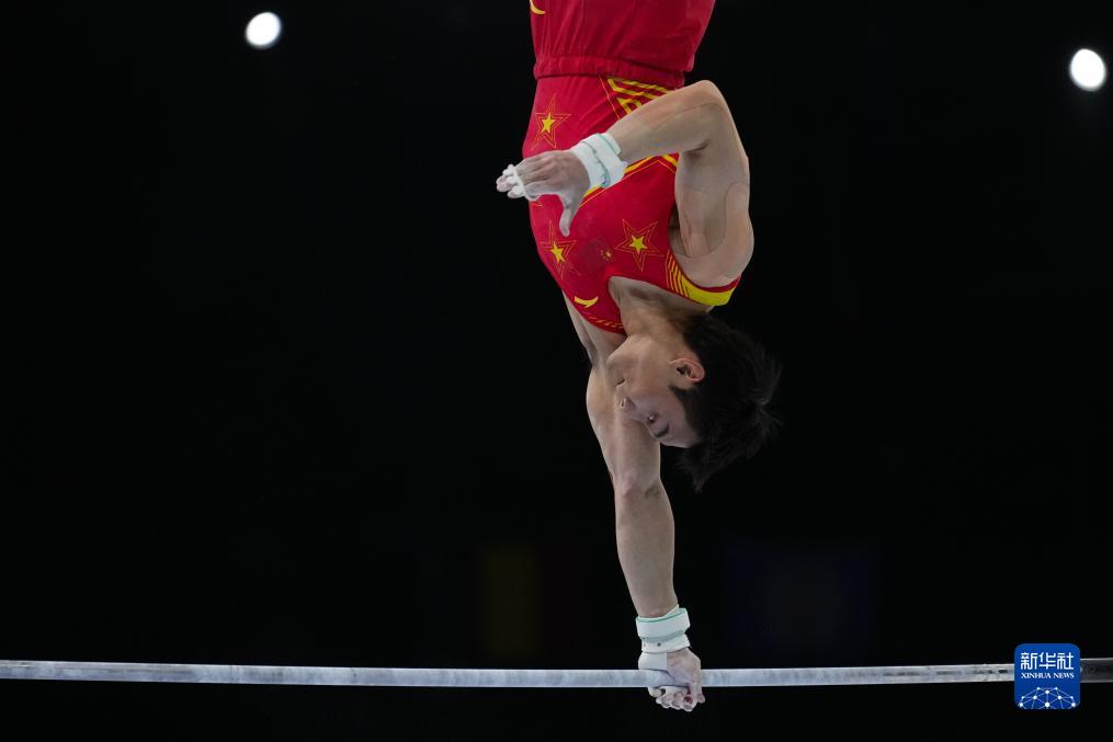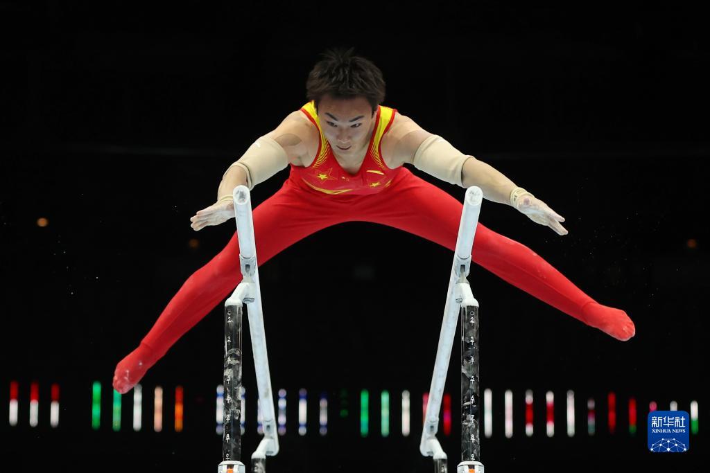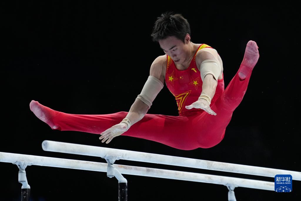 10月3日,中国队选手尤浩在双杠项目比赛中。新华社记者 郑焕松 摄
