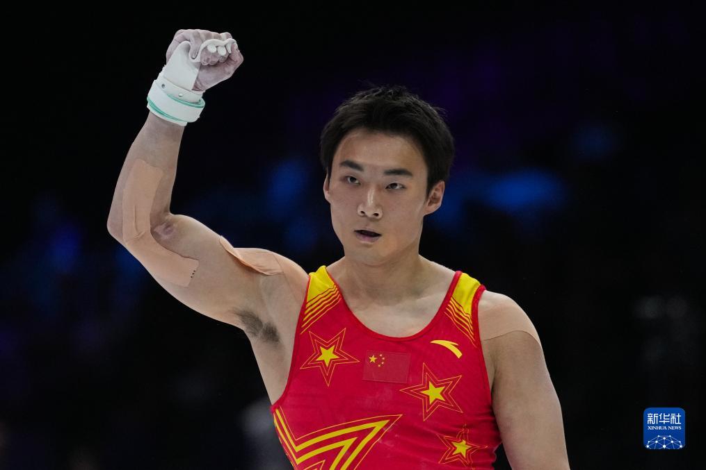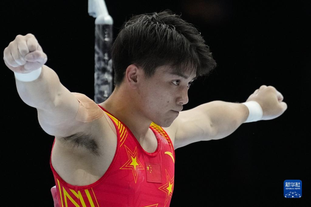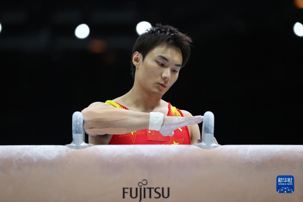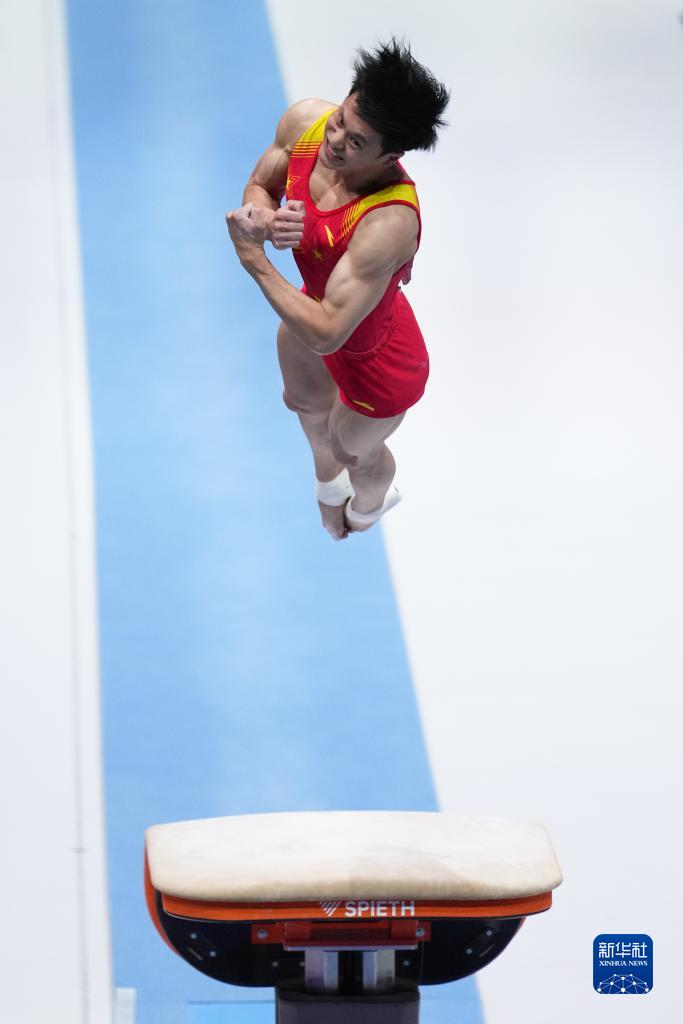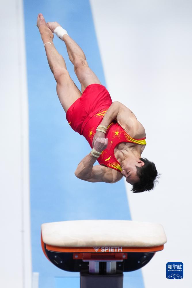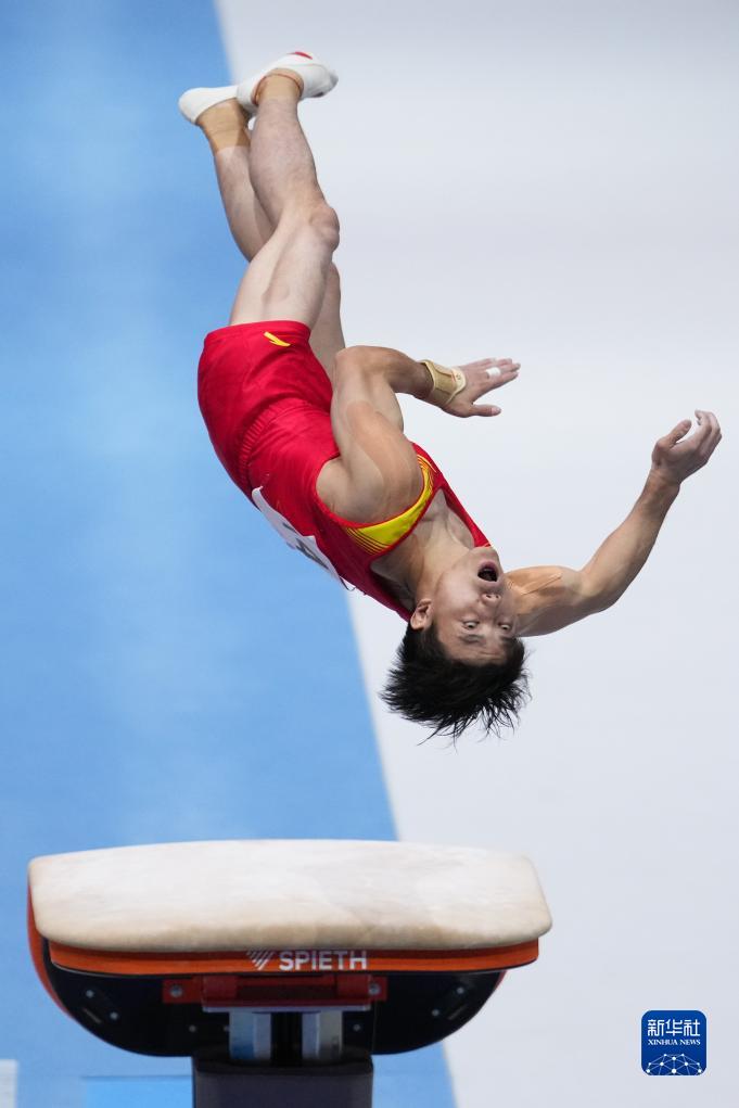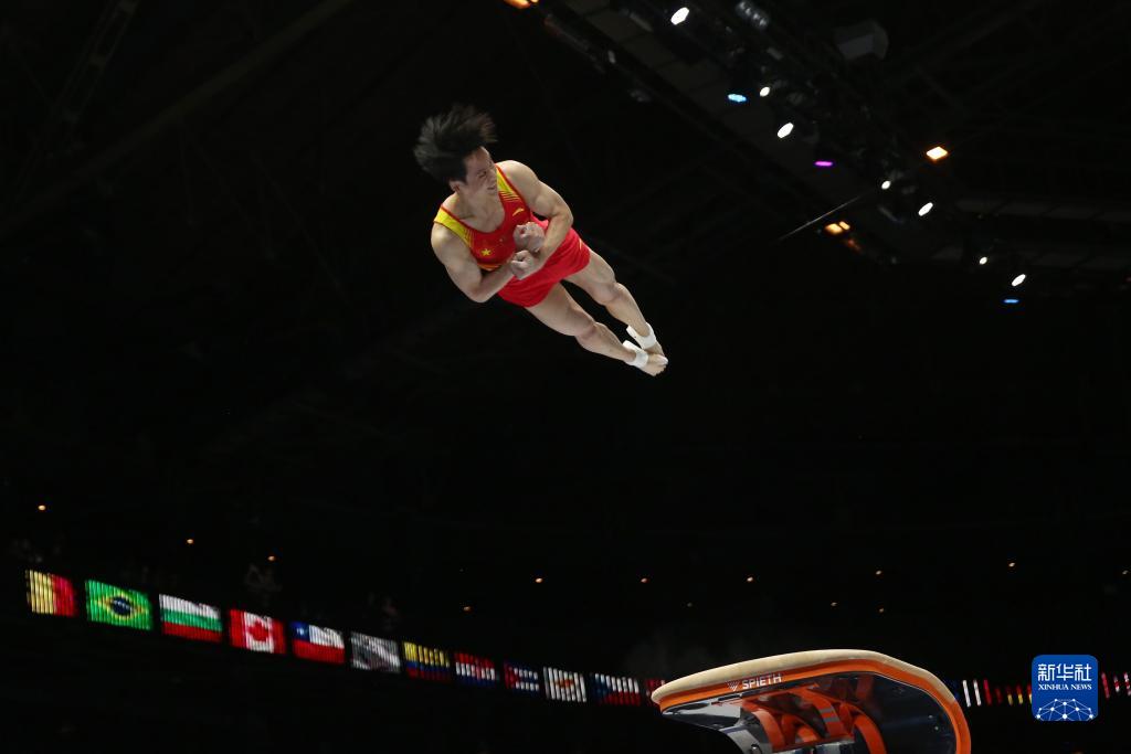 10月3日,中国队选手尤浩在鞍马比赛中。新华社记者 赵丁喆 摄