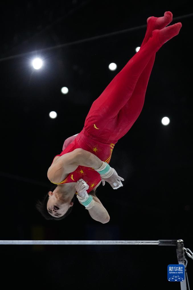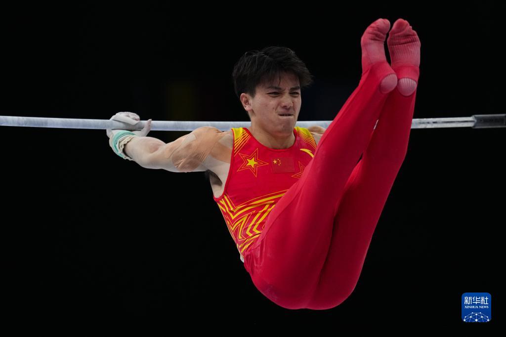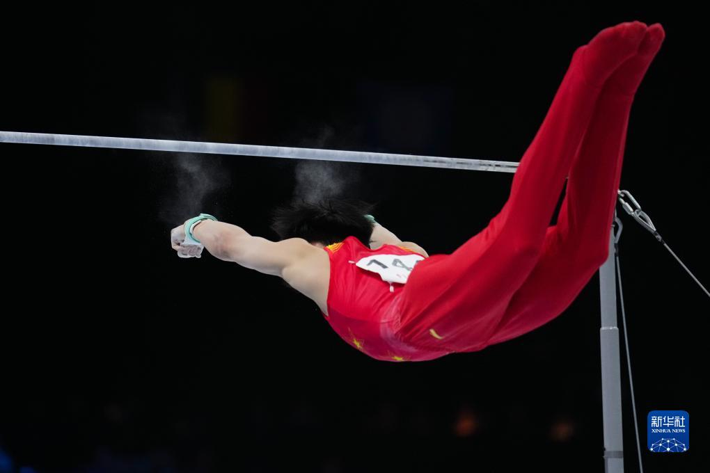 10月3日,中国队选手苏炜德在单杠项目比赛中。新华社记者 赵丁喆 摄