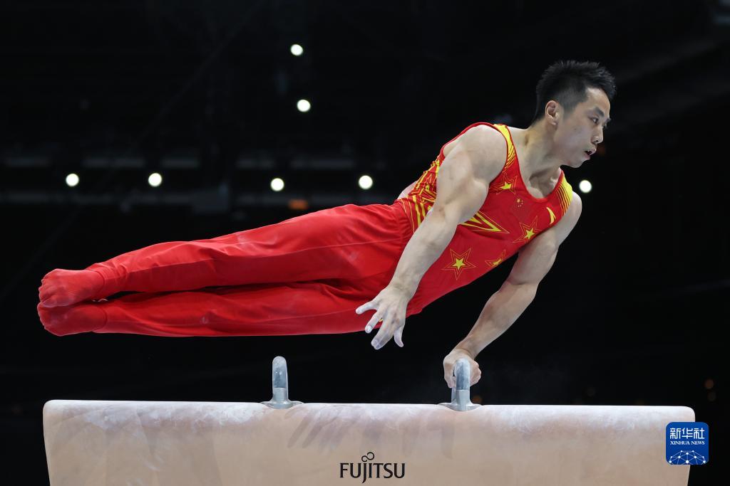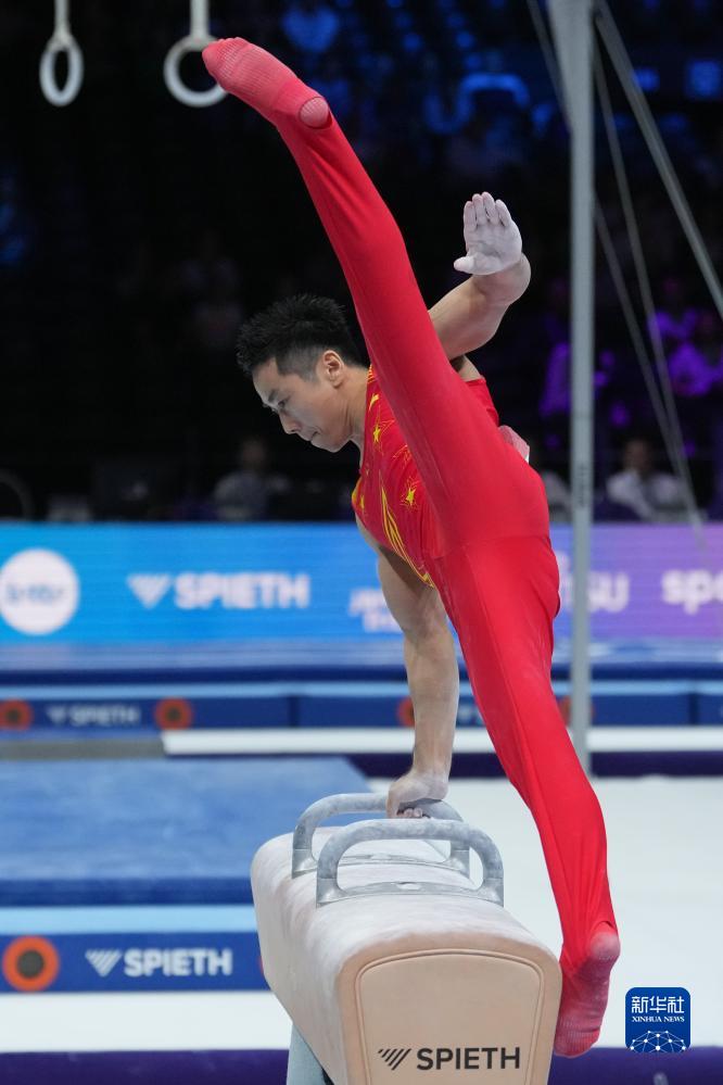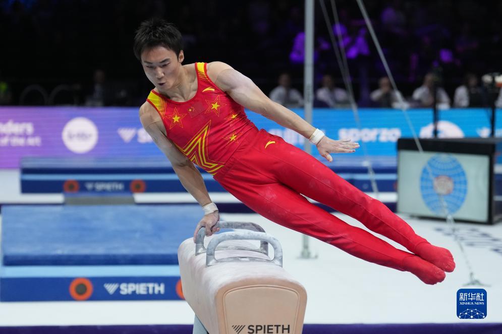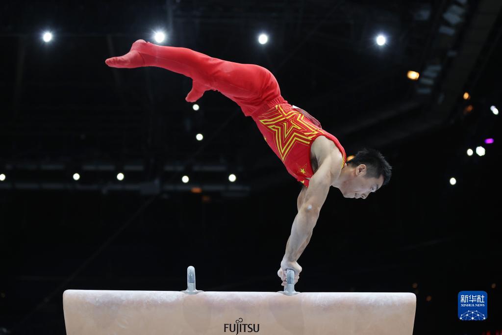 10月3日,中国队选手林超攀在鞍马项目比赛中。新华社记者 郑焕松 摄