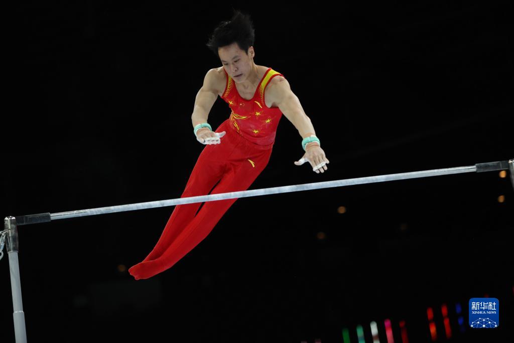 10月3日,中国队选手林超攀在单杠项目比赛中。新华社记者 郑焕松 摄