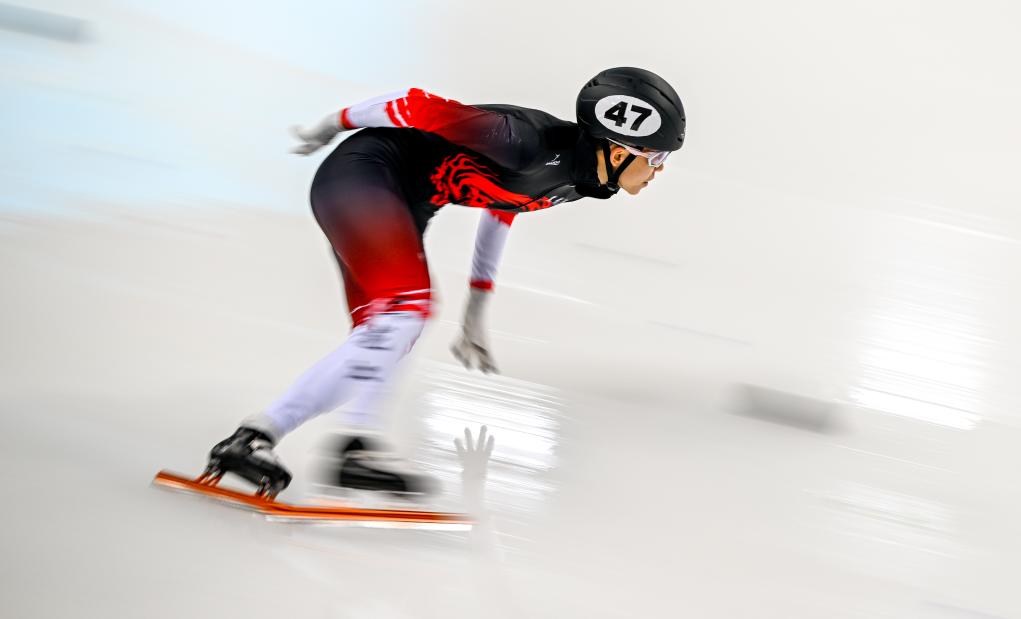 9月12日,范可新在2023-2024赛季中国杯短道速滑精英联赛(呼和浩特站)中。新华社记者 连振 摄