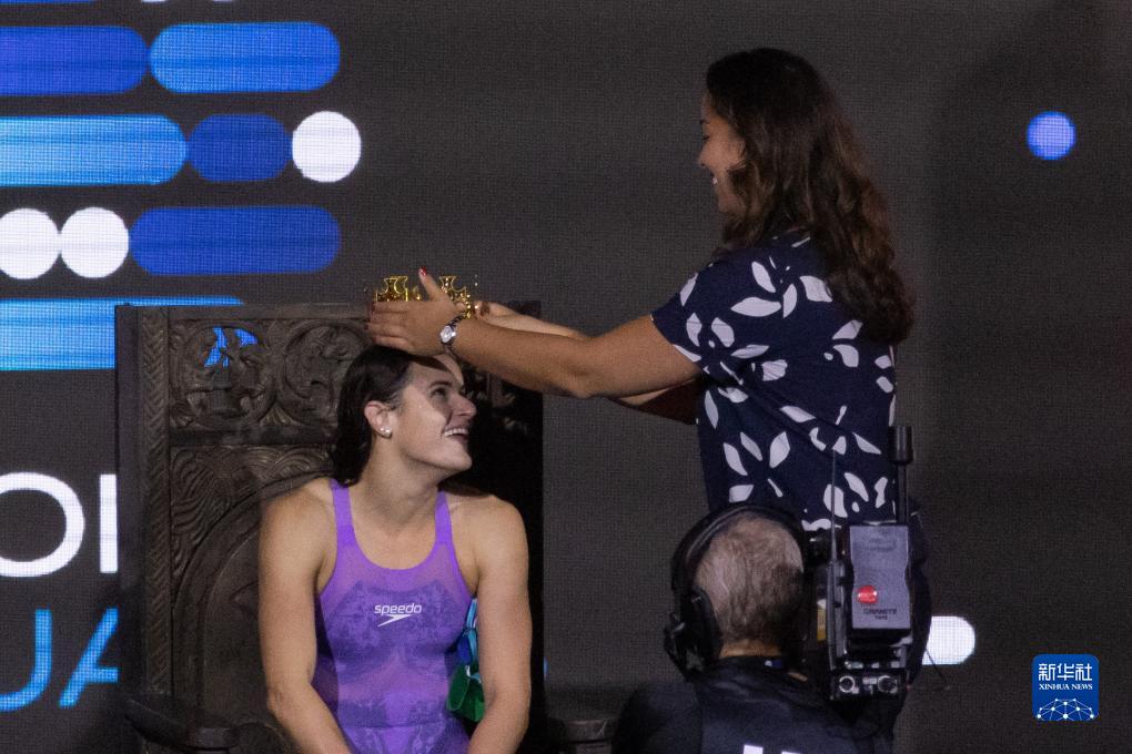 10月21日,麦基翁在女子100米仰泳决赛后庆祝。新华社发(弗尔季·奥蒂洛摄)