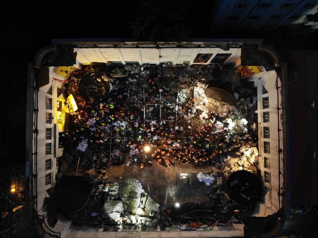 这是7月24日拍摄的齐齐哈尔市第34中学体育馆屋顶坍塌事故搜救现场(无人机照片)。新华社记者 王松 摄