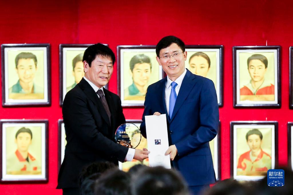 11月17日,国家艺术体操队集体组教练员孙丹在仪式上发言。新华社记者 许雅楠 摄
