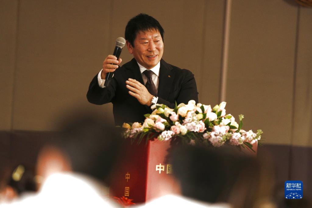 11月17日,国际体操联合会主席渡边守成在仪式上致辞。新华社记者 许雅楠 摄