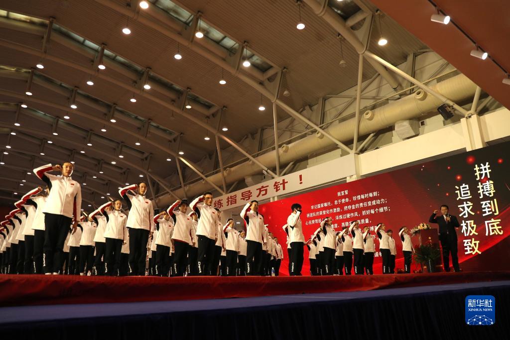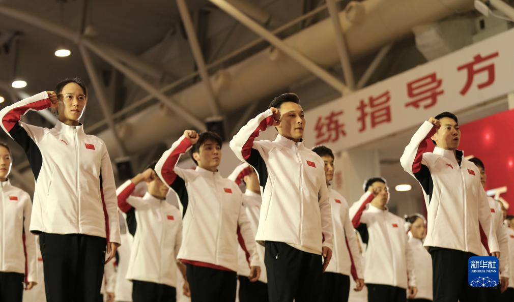 11月17日,中国体操国家队进行冬训宣誓。新华社记者 许雅楠 摄