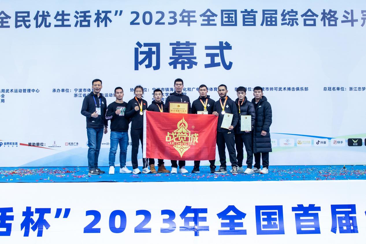 2023年12月27日,2023年全国综合格斗冠军赛在浙江宁波闭幕,“JCK战觉城代表队”摘得3金2银的成绩,位列奖牌榜第一名。